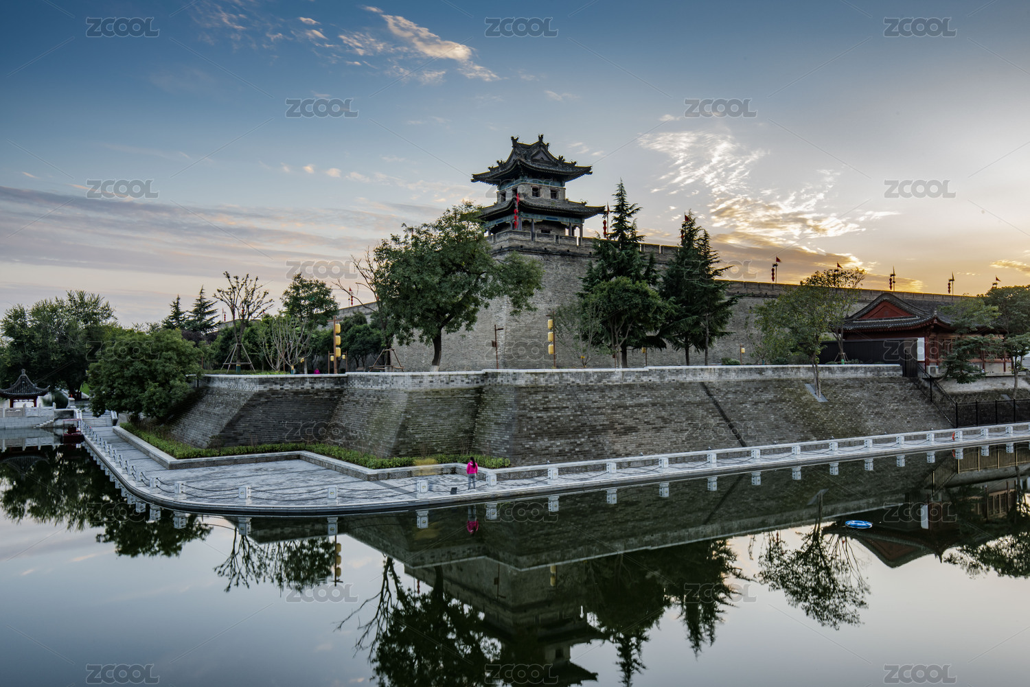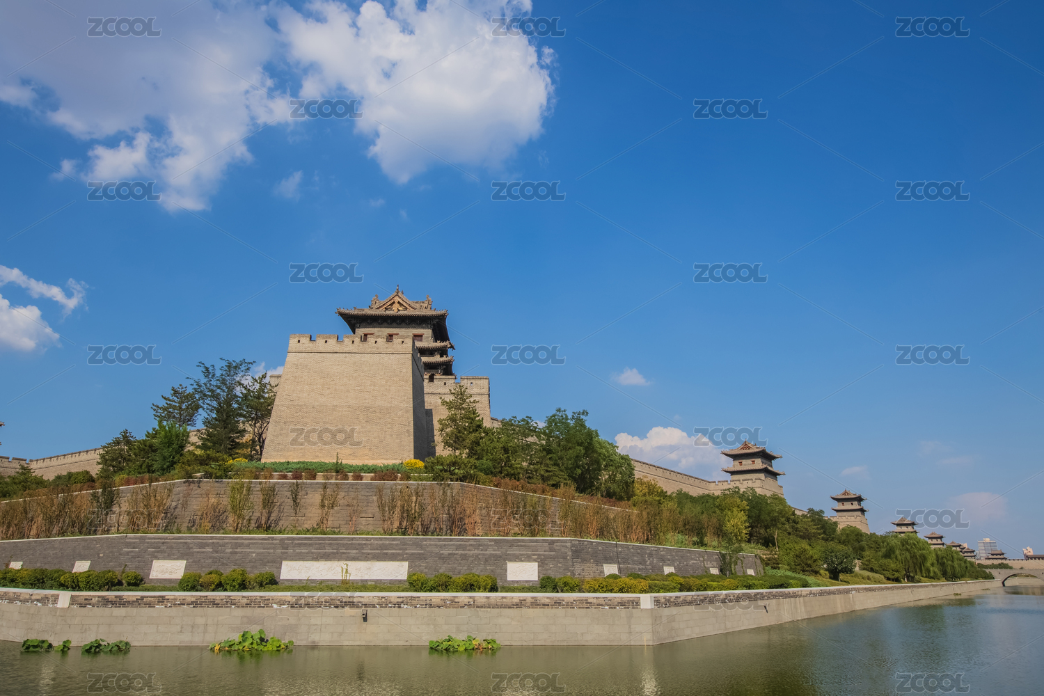 城墙 古建 护城河 带状公园 大同