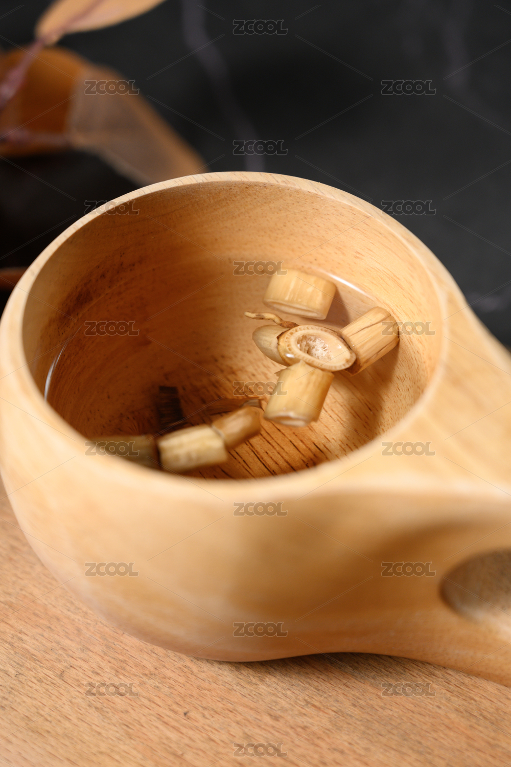 桌面上杯子里甘甜的可口的葛根茶