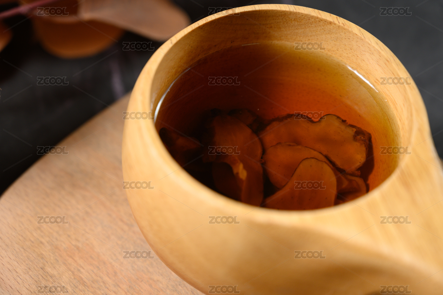 桌面上的杯子里的甘甜可口的红参茶