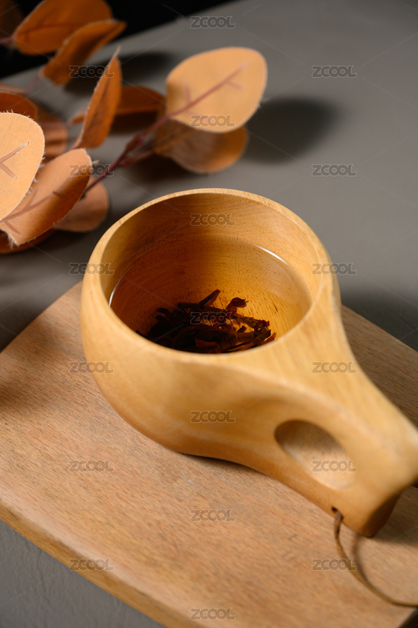 桌面上的杯子里的甘甜可口的胰岛果茶