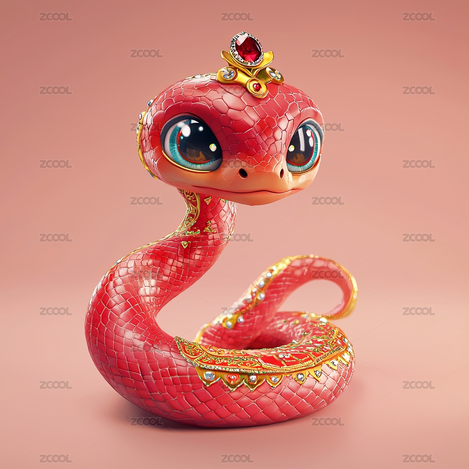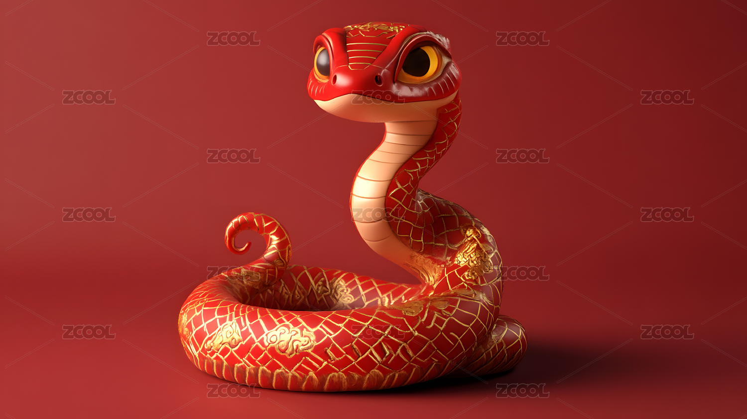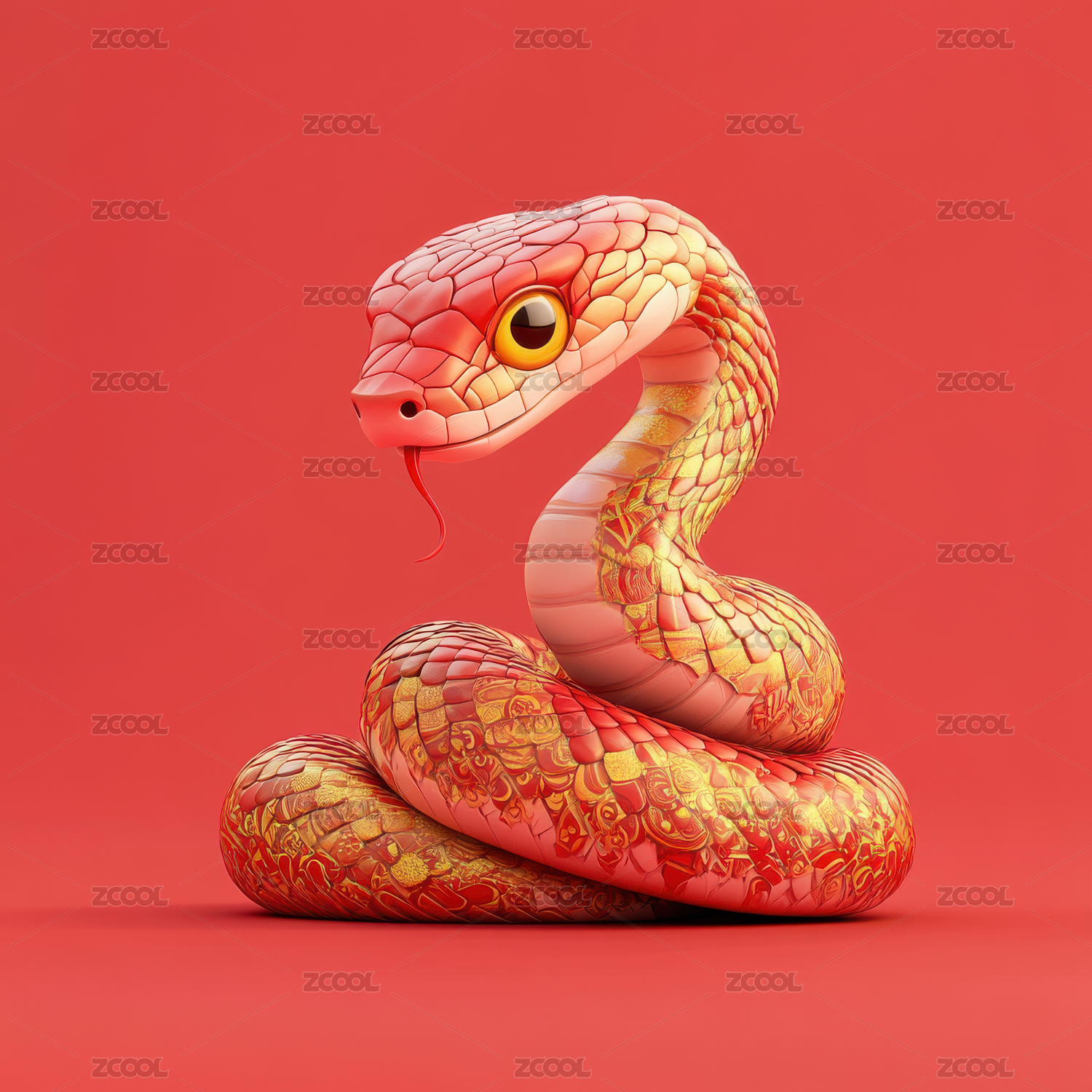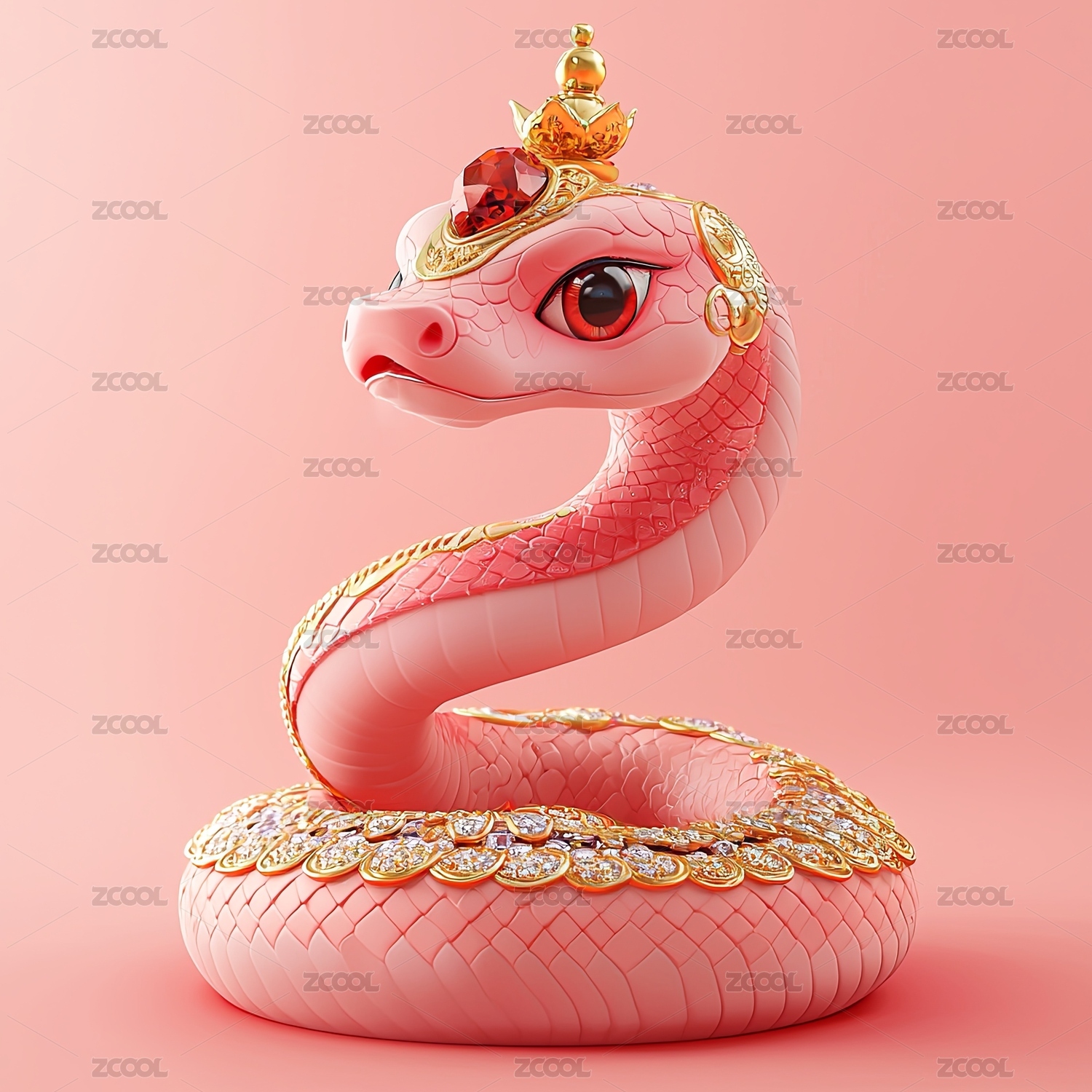 蛇,珠宝,金蛇,蛇头,蛇身,蛇鳞,插画,3D,卡通,动物