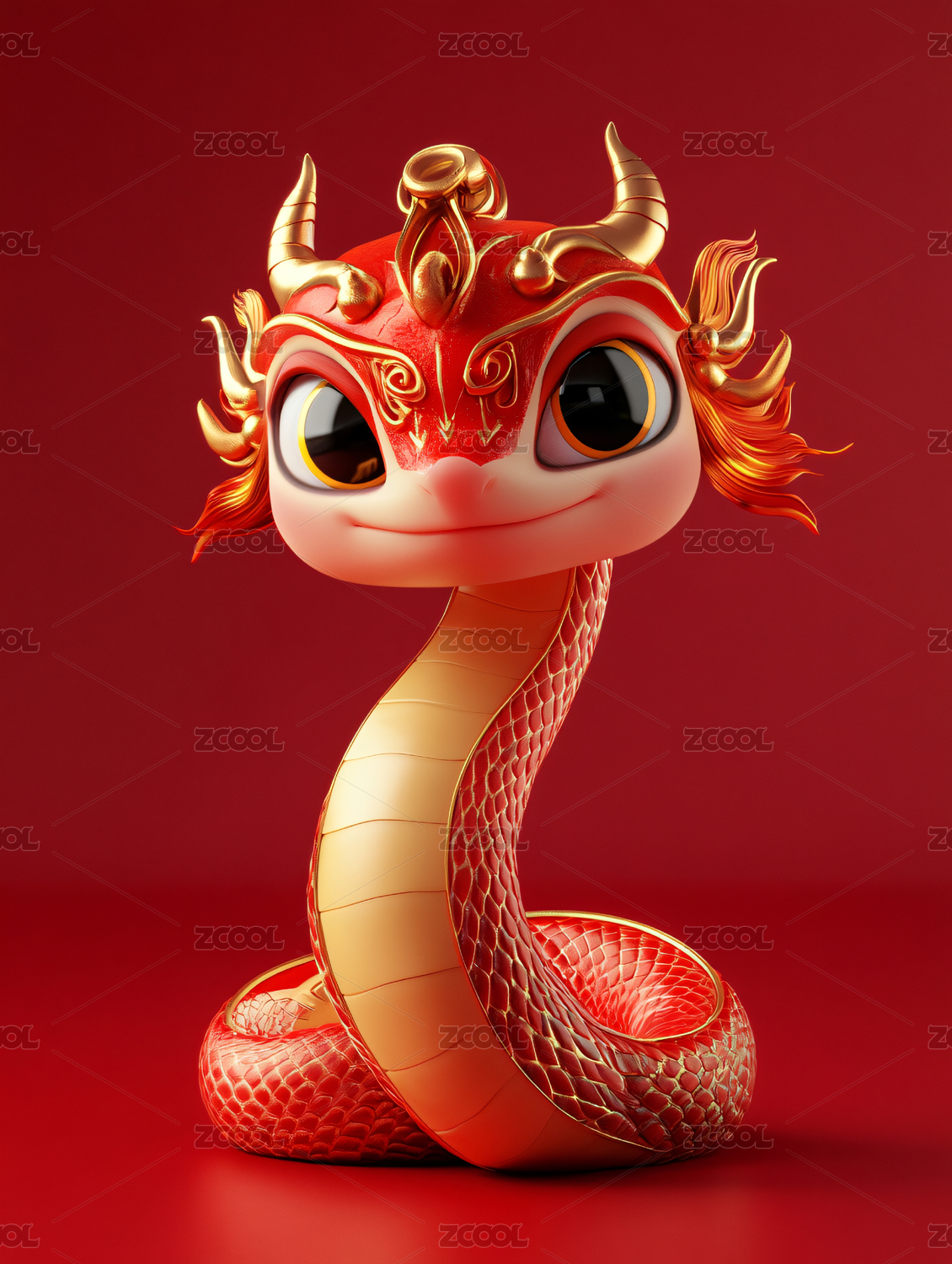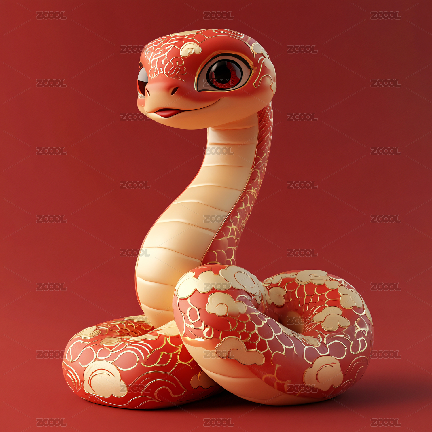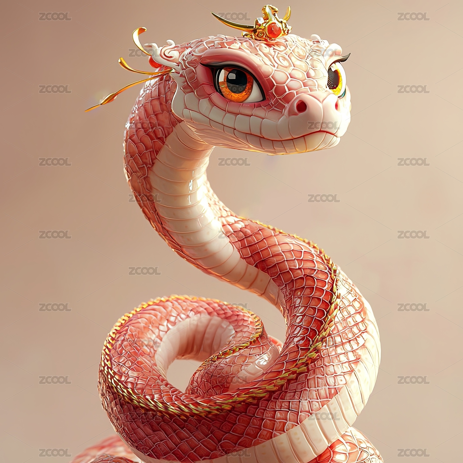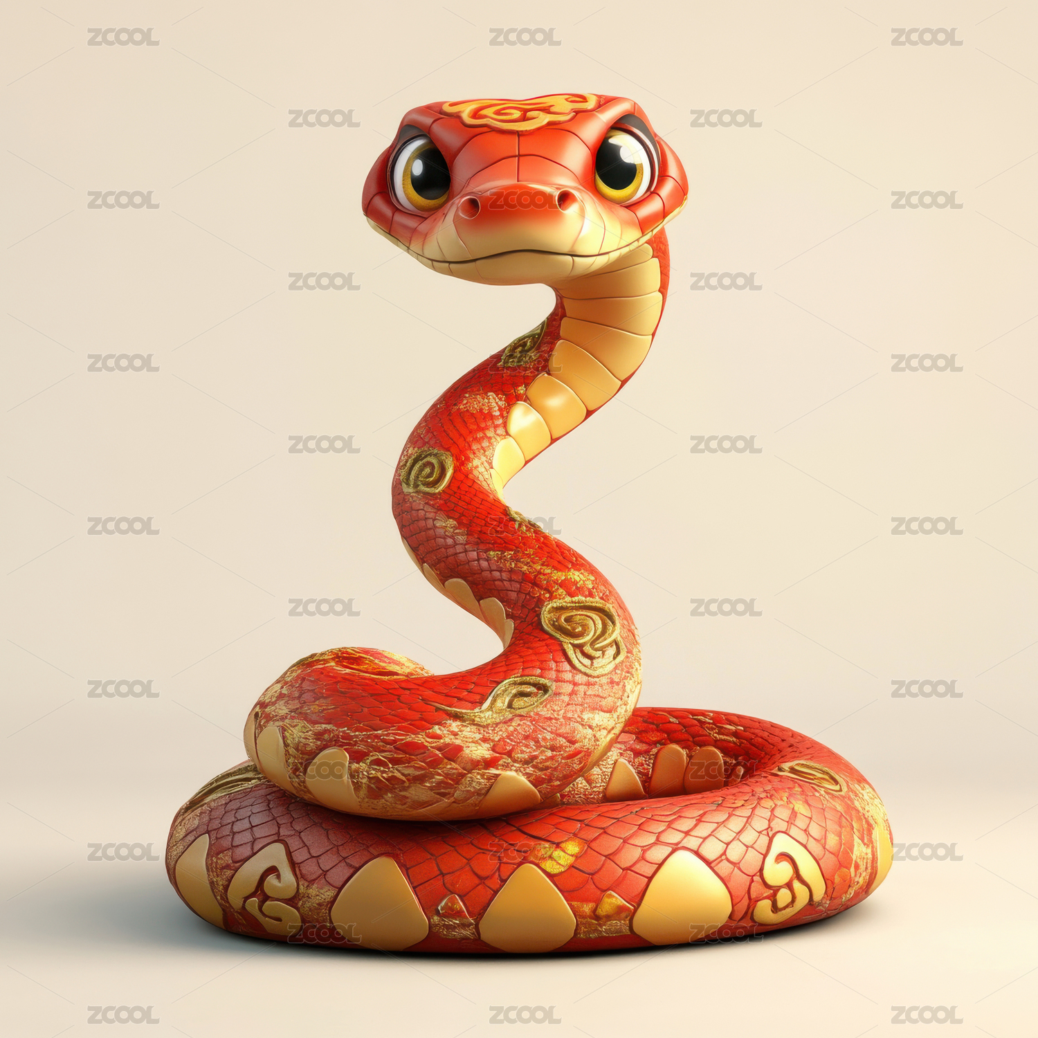 蛇,珠宝,金蛇,蛇头,蛇身,蛇鳞,插画,3D,卡通,动物
