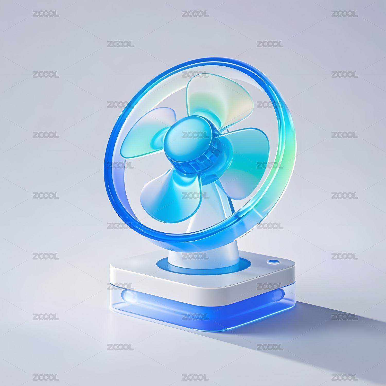 风力涡轮机,发电,风力,新能源,3d图标,UI设计,玻璃质感,等距,蓝色,透明