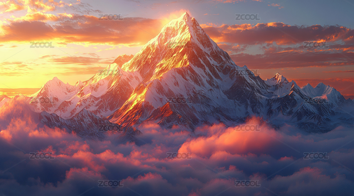 户外,天空,自然,风景,高山,日落,地形,旅行,美,AI数字艺术