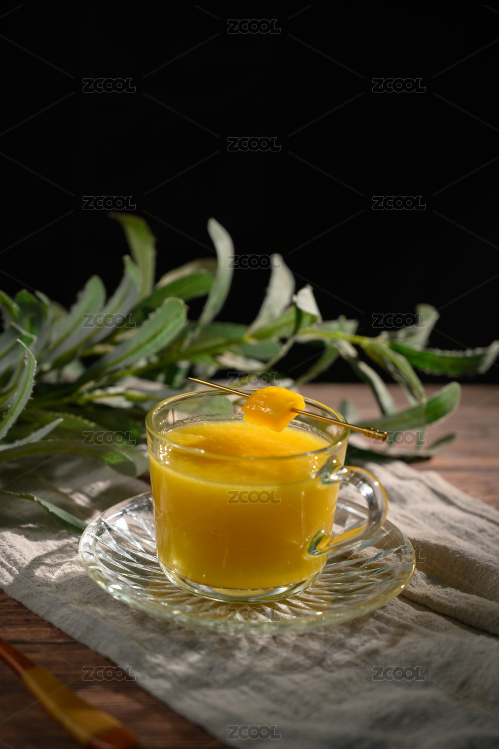 桌面上的杯子里的甘甜可口的冰木橘茶