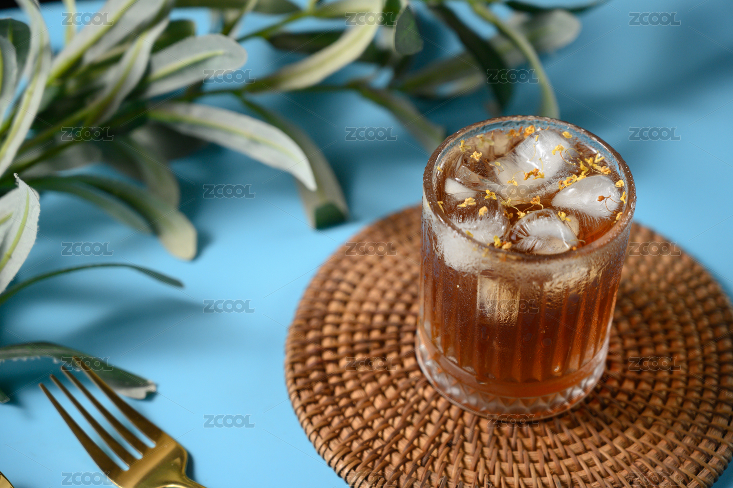 桌面上的杯子里的美味可口的桂花酸梅汤
