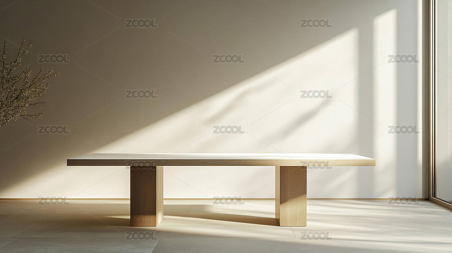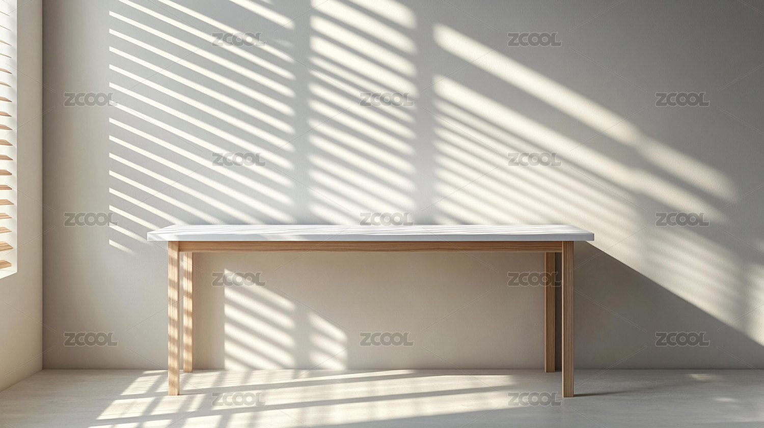 靠墙的空木桌