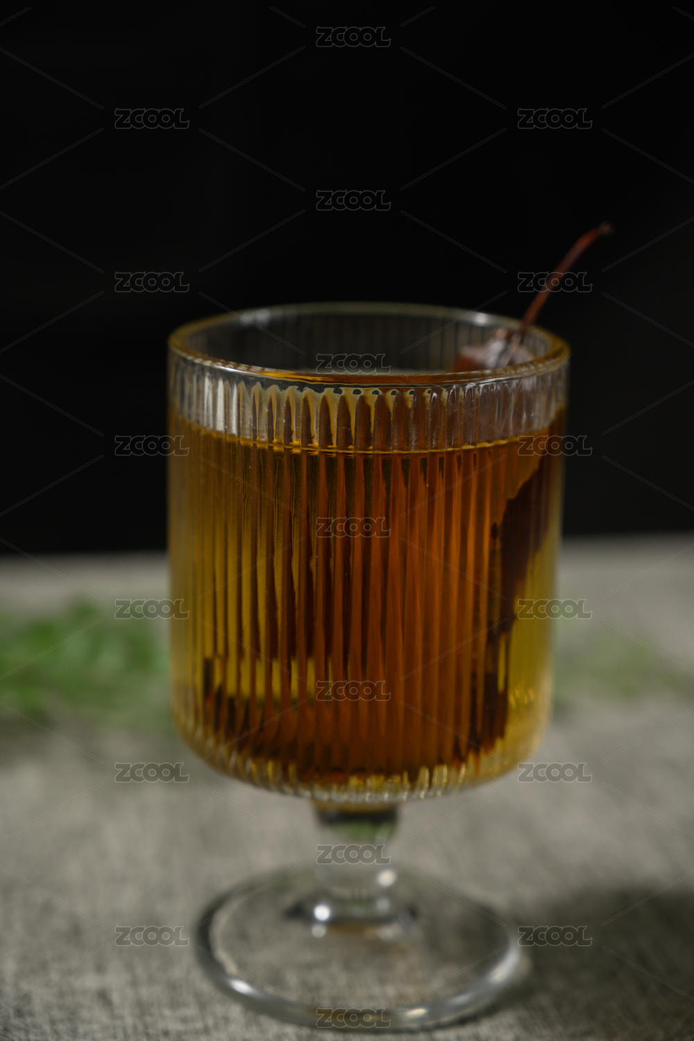 桌面上的杯子里的美味可口的桂花酸梅汤