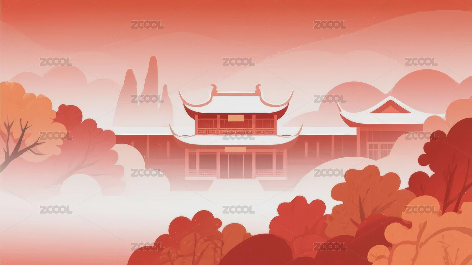 中国传统古建筑景观艺术插画
