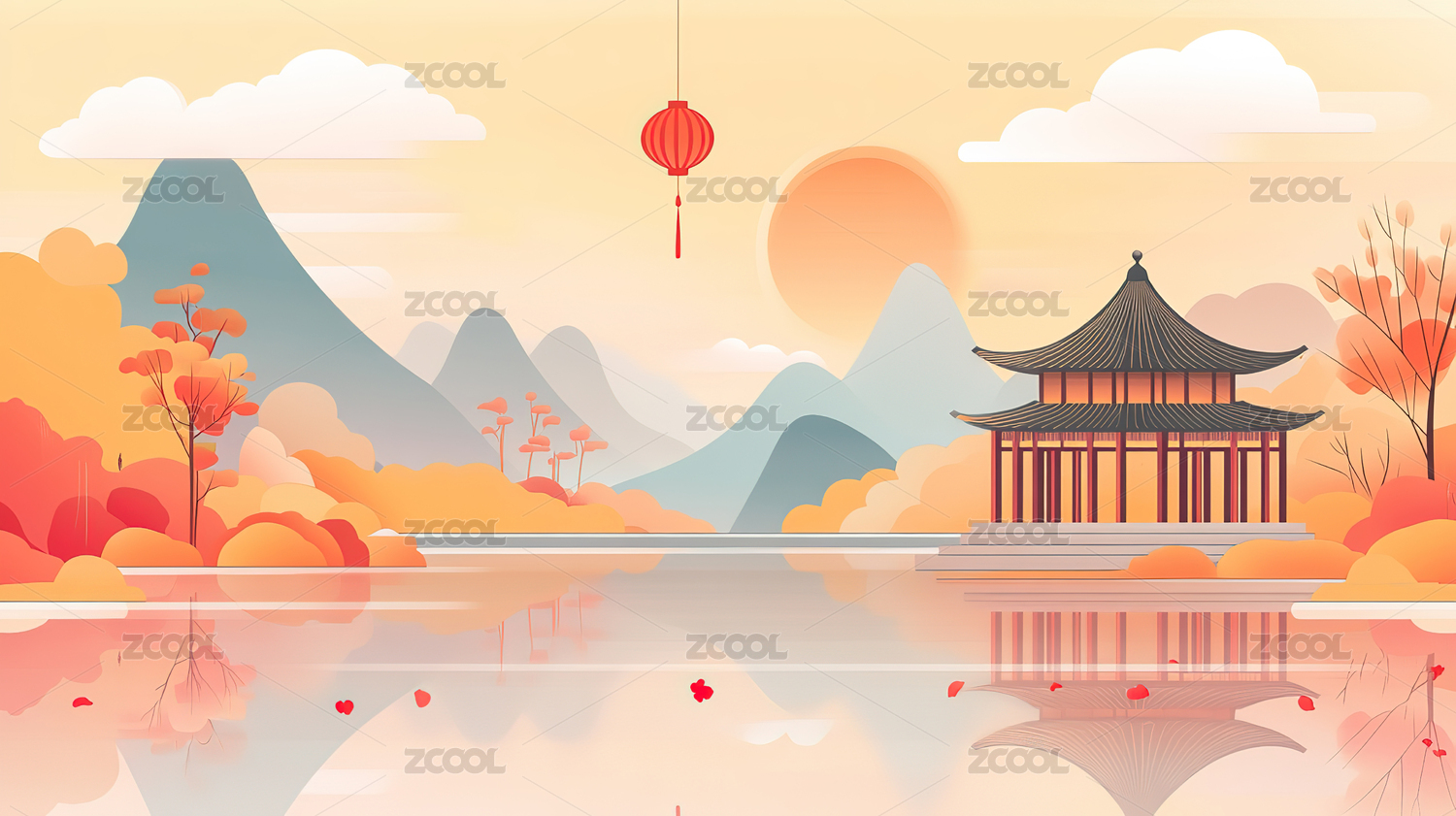手绘古风中国风节日场景