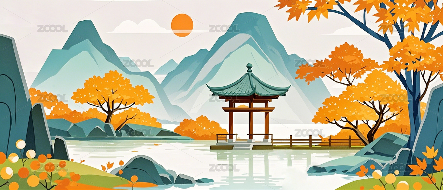 国潮插画秋天风景画