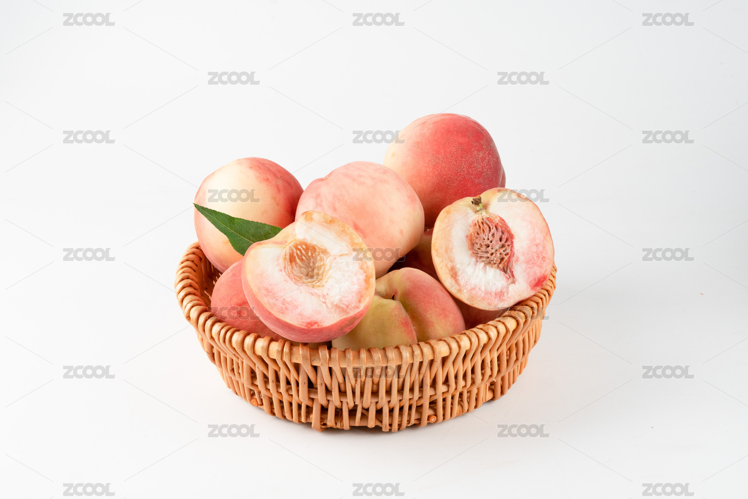 一盘新鲜春雪水蜜桃和水蜜桃果肉