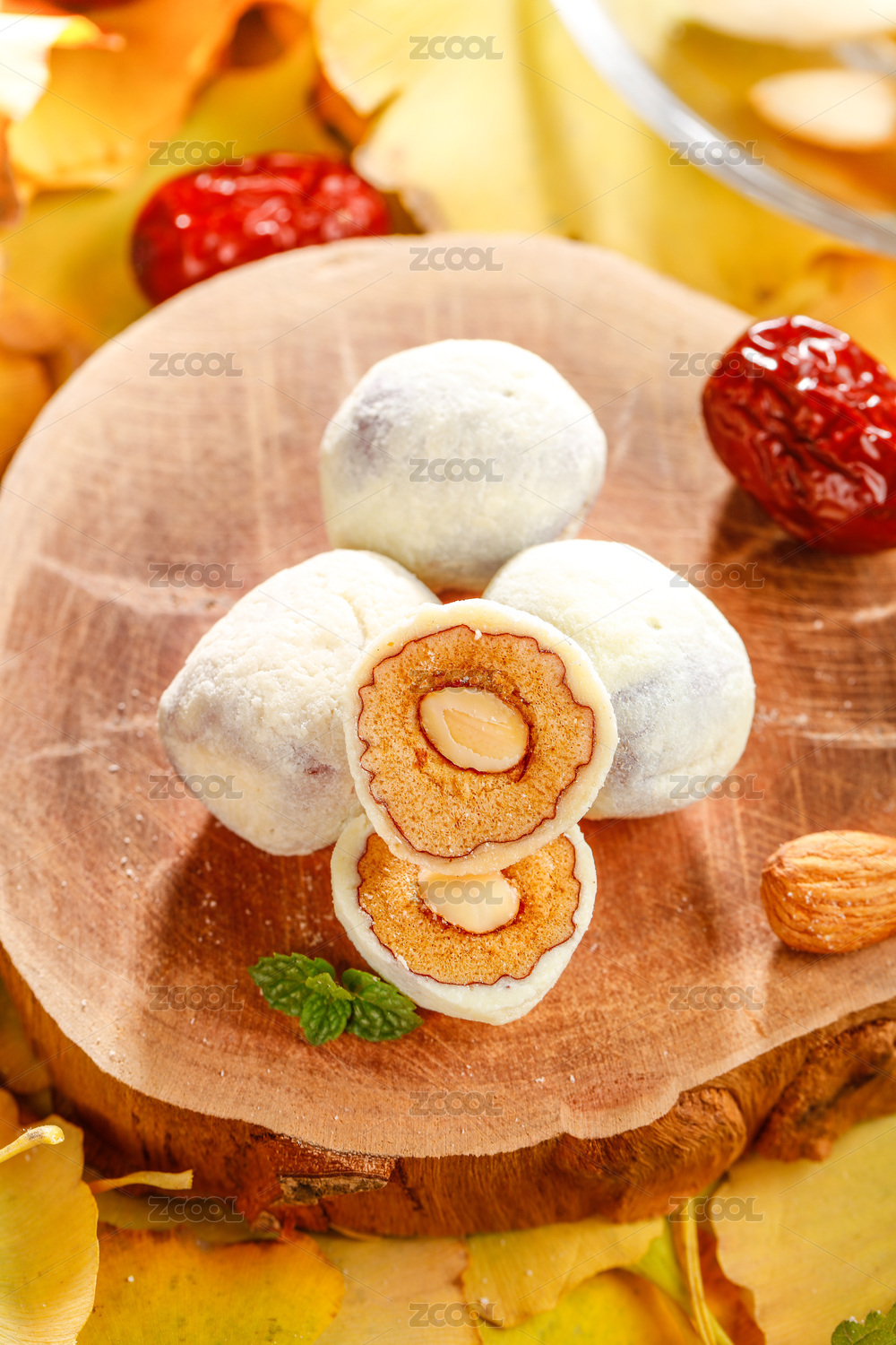 切开一半的杏仁夹心奶枣