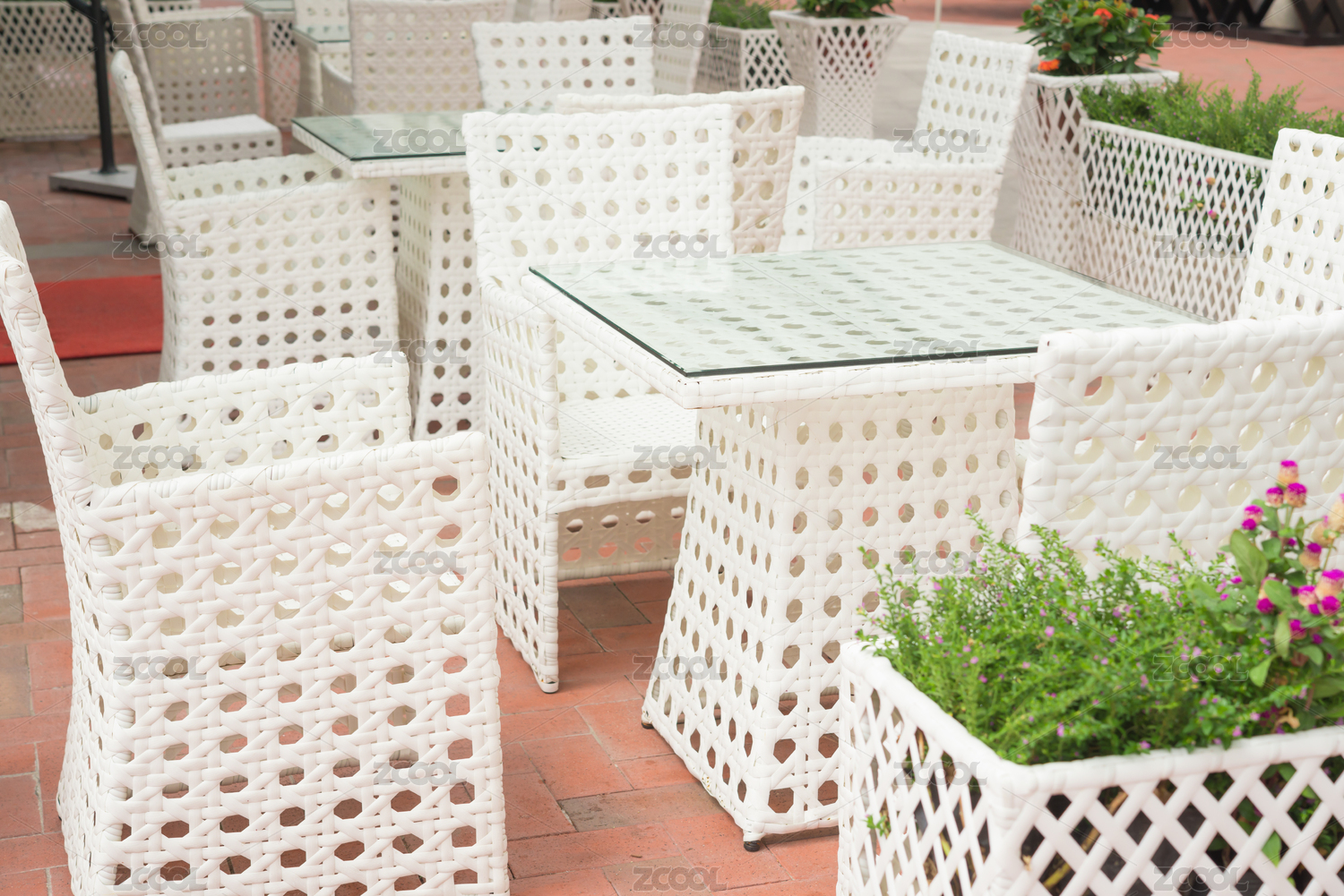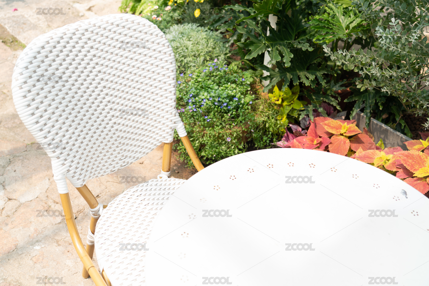 户外藤椅及桌子