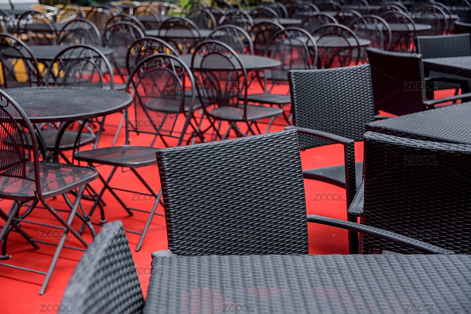 露天餐厅的桌椅
