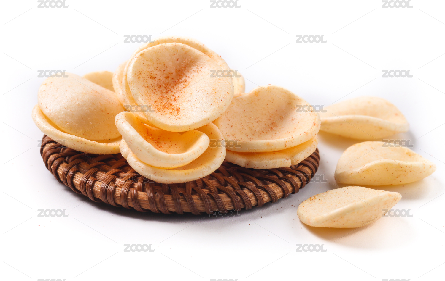 白底上放着薯片