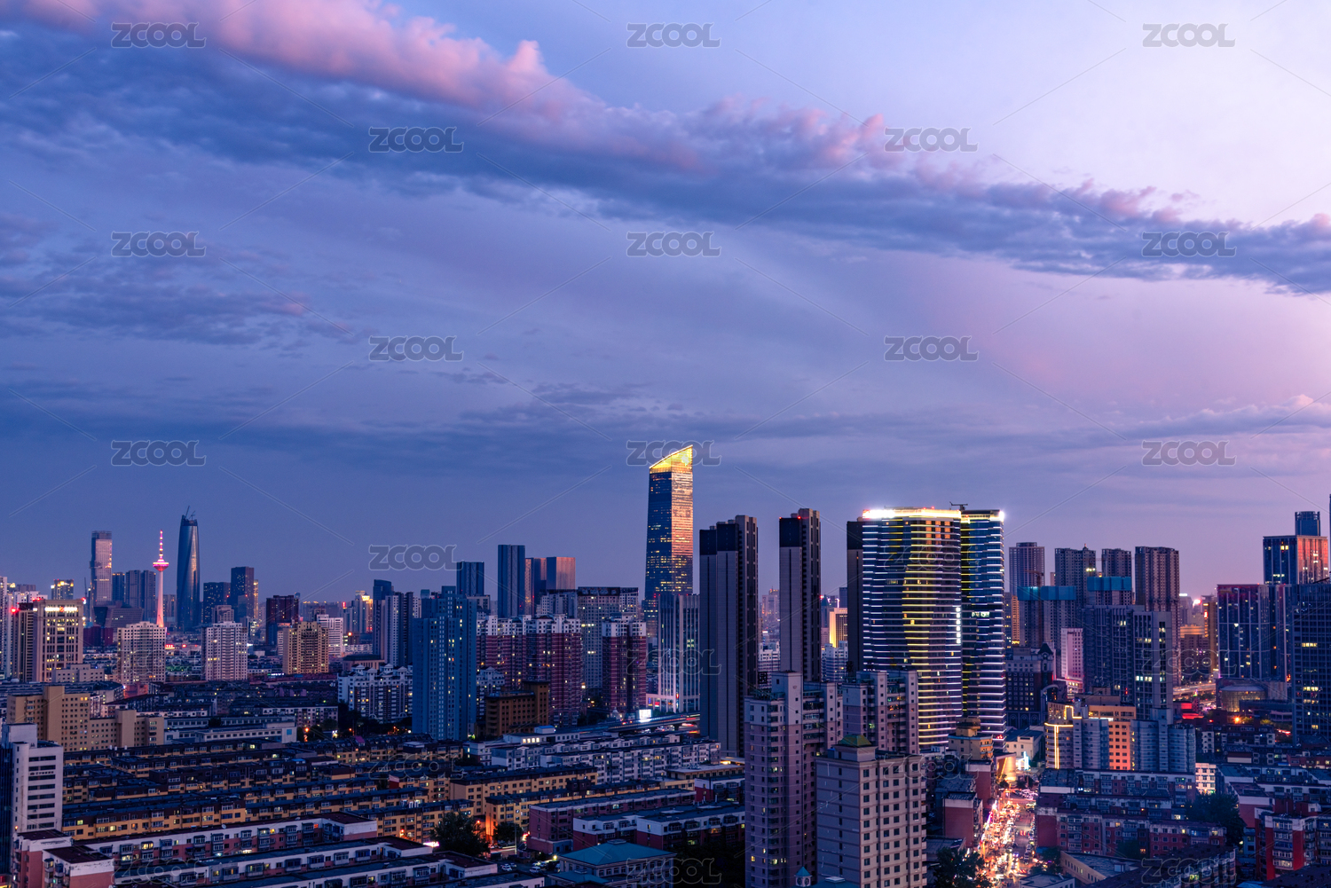 中国浙江宁波鄞州中心区黄昏时分风光