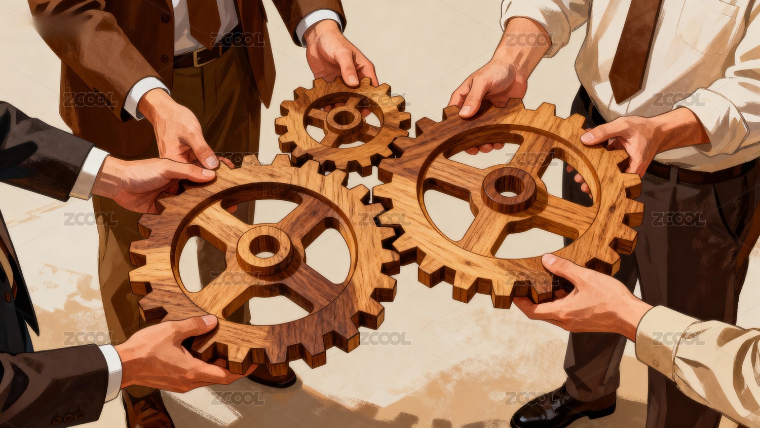 工人,齿轮,3D插画,工业,机械,立体,设计,动力,设备,制造业