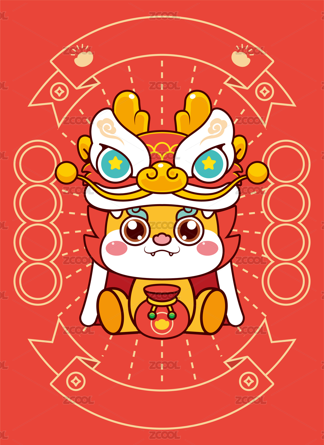可爱,卡通,龙年,表情,红色,新年,贺寿,发财,横幅
