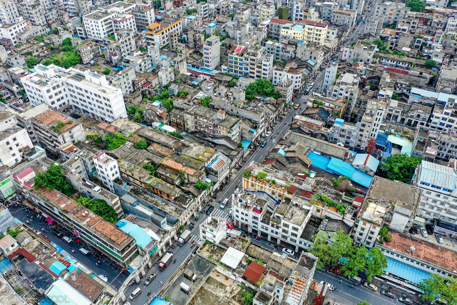 航拍海南海口骑楼老街街区历史文化建筑群落