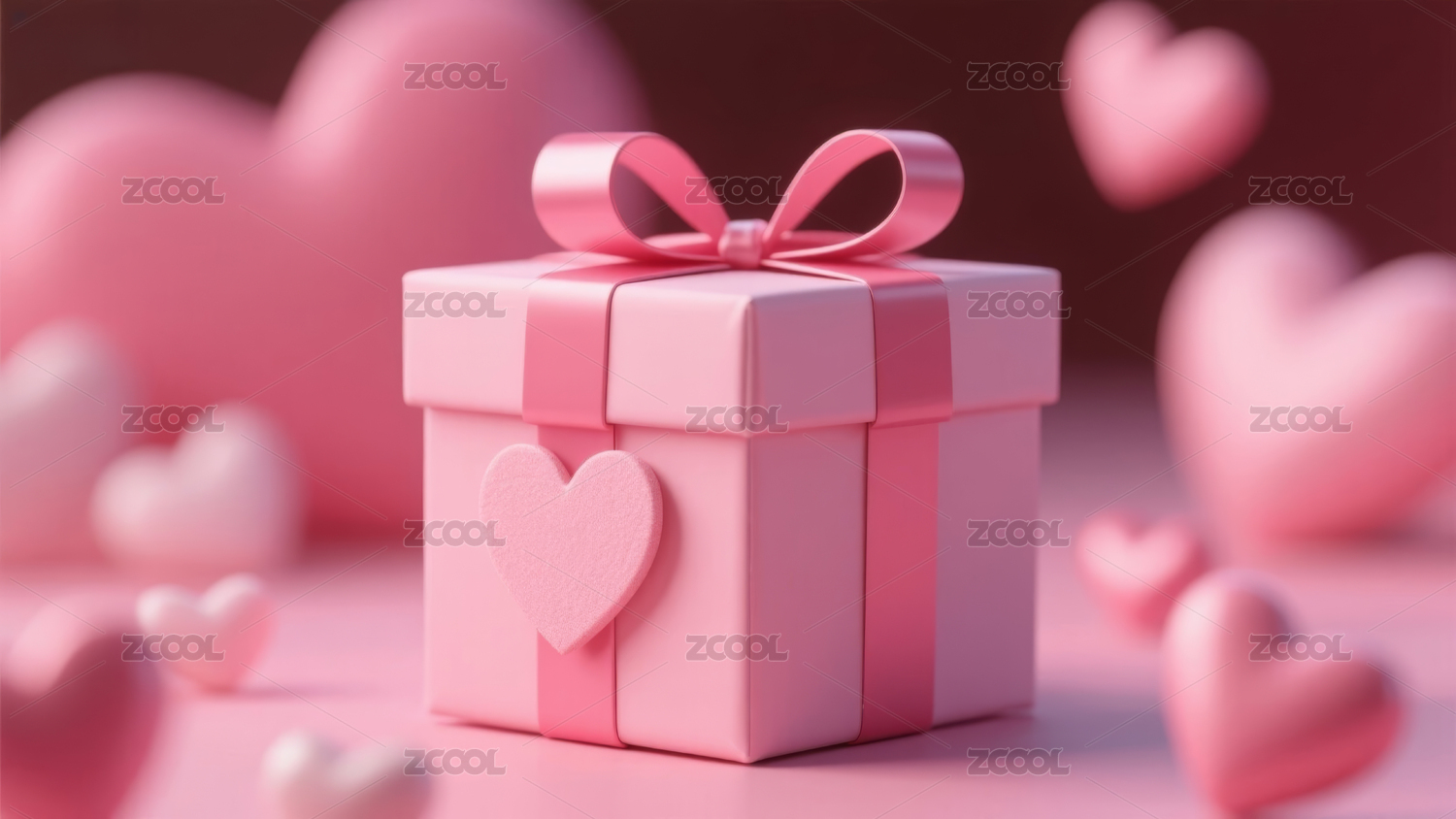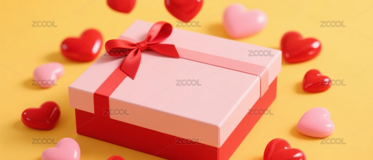 粉色礼盒与浪漫心形背景