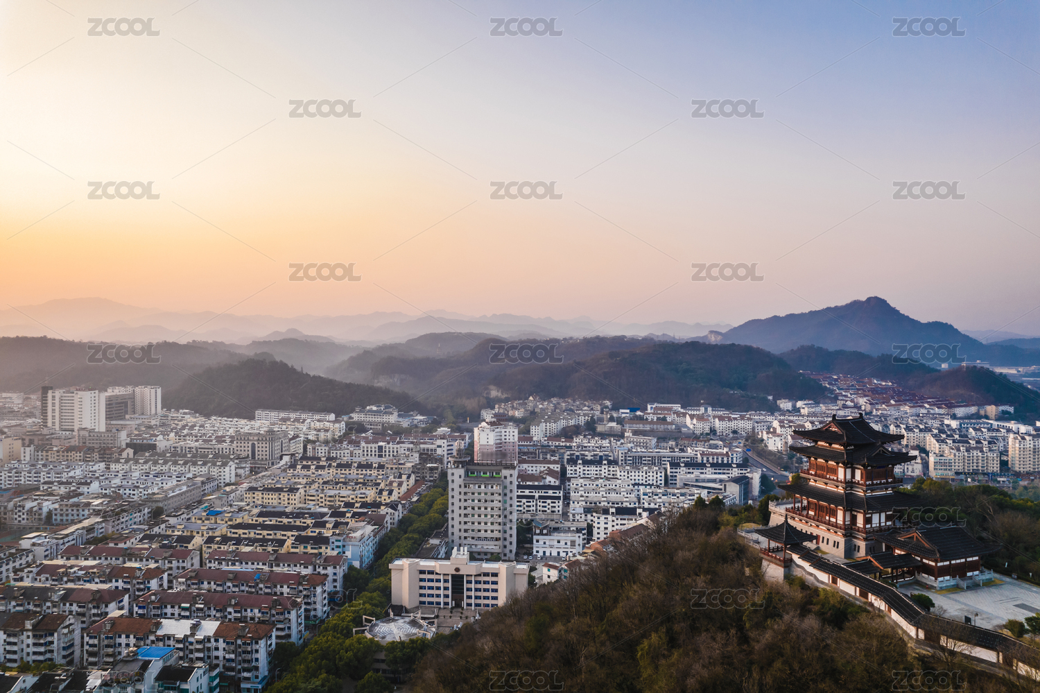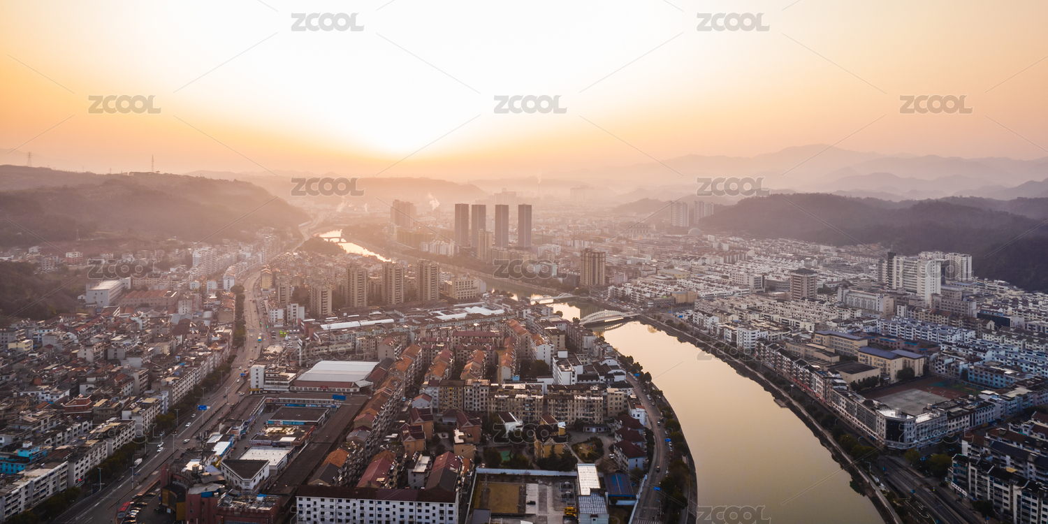 新昌县城市风光 日出 逆光