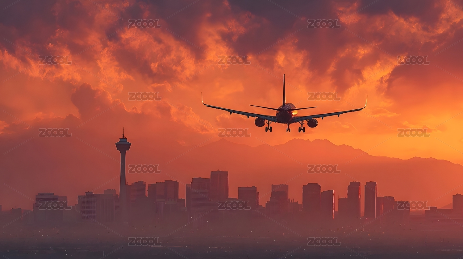 飞机,城市,旅行,天空,现代,天际线,散景,灯光,颜色,城市化
