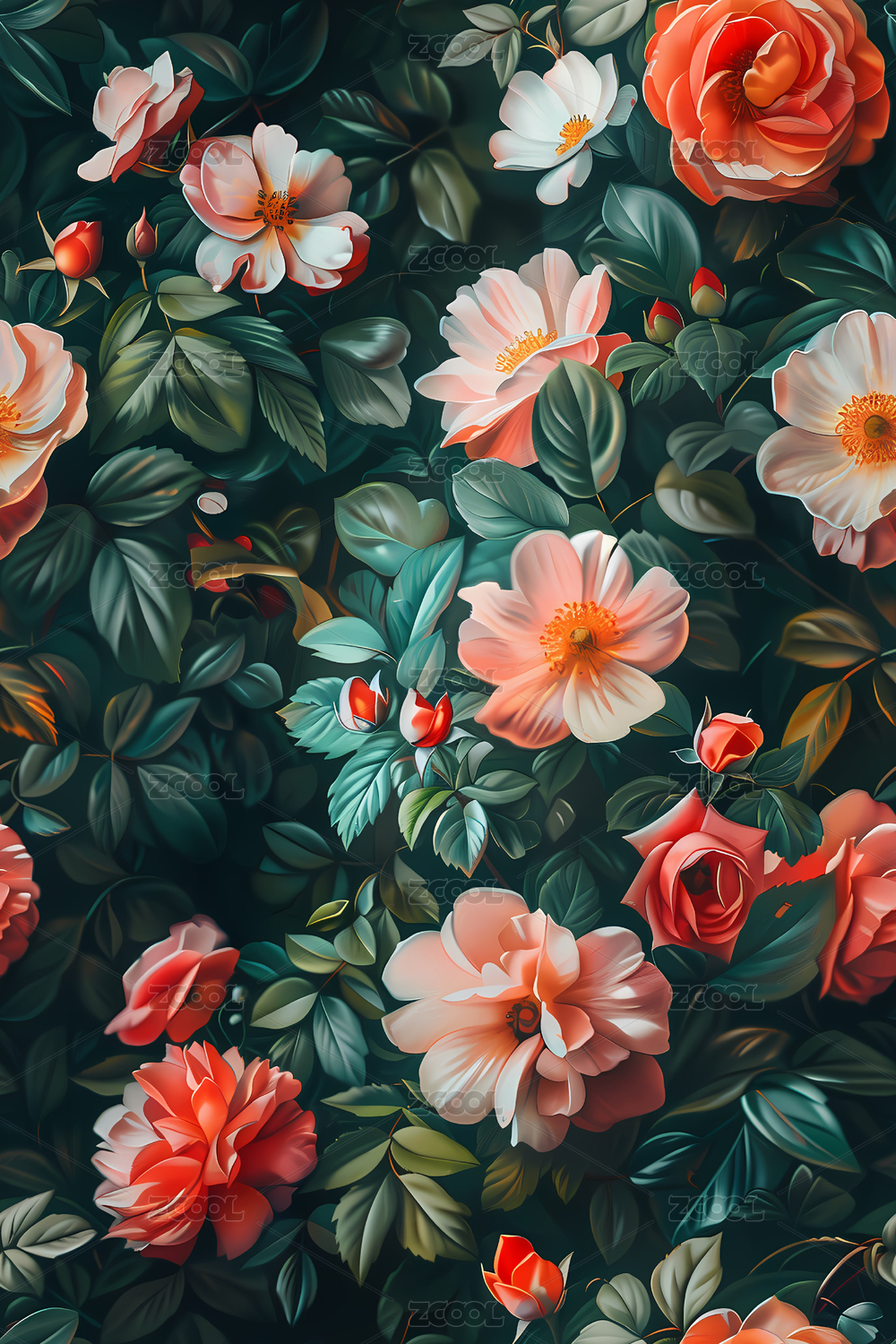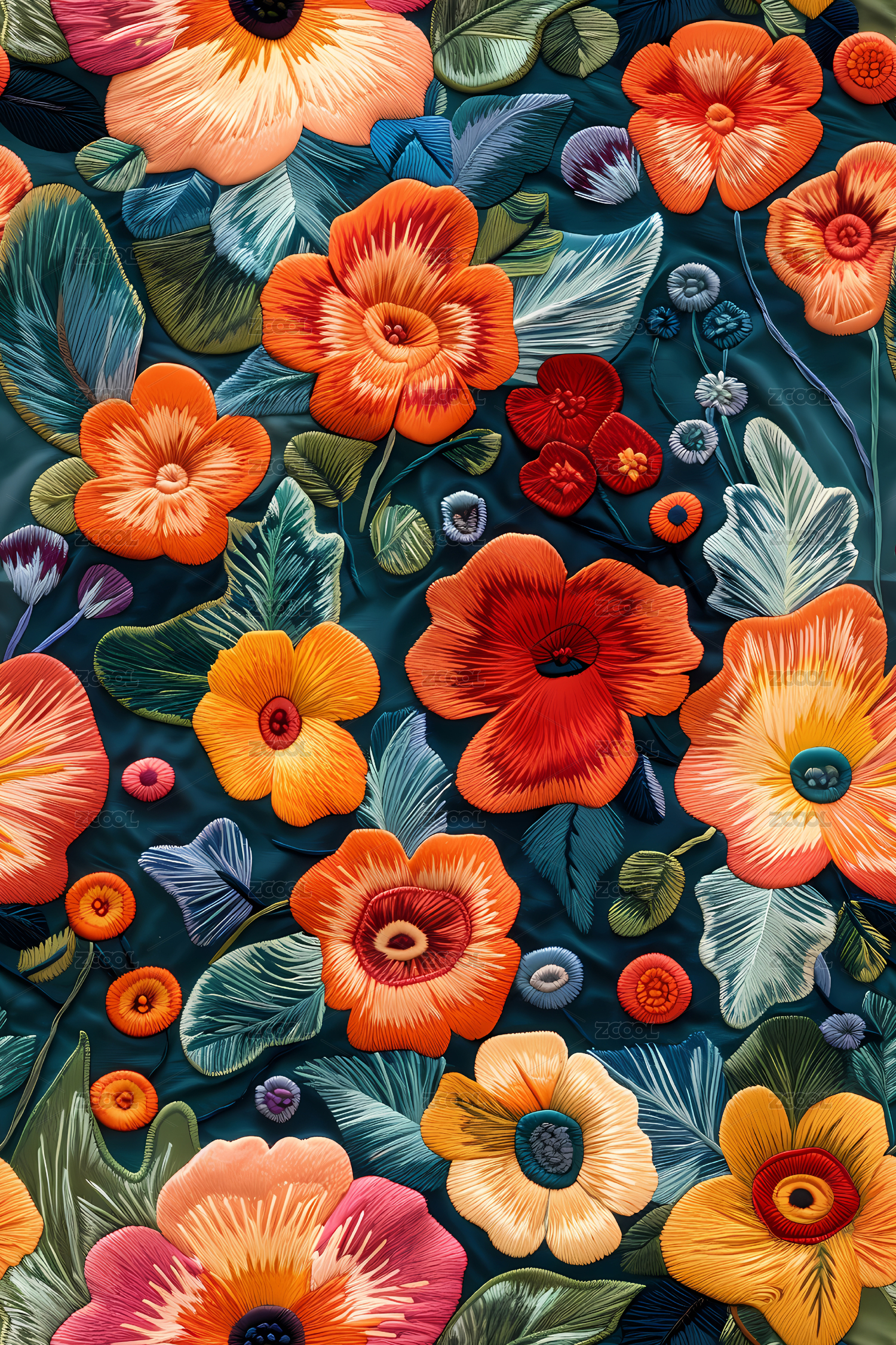 四方连续图数码花卉