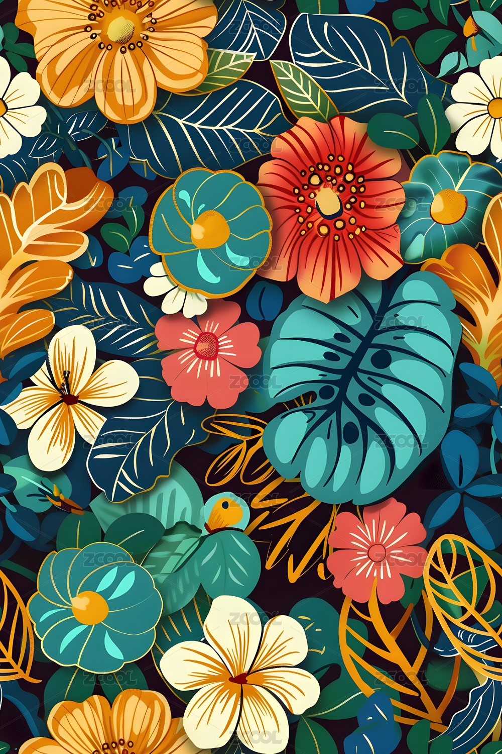 绚丽多彩的热带花卉图案壁纸