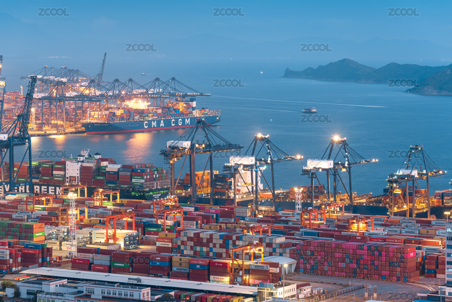 上海洋山深水港集装箱货运码头夜景建筑风光