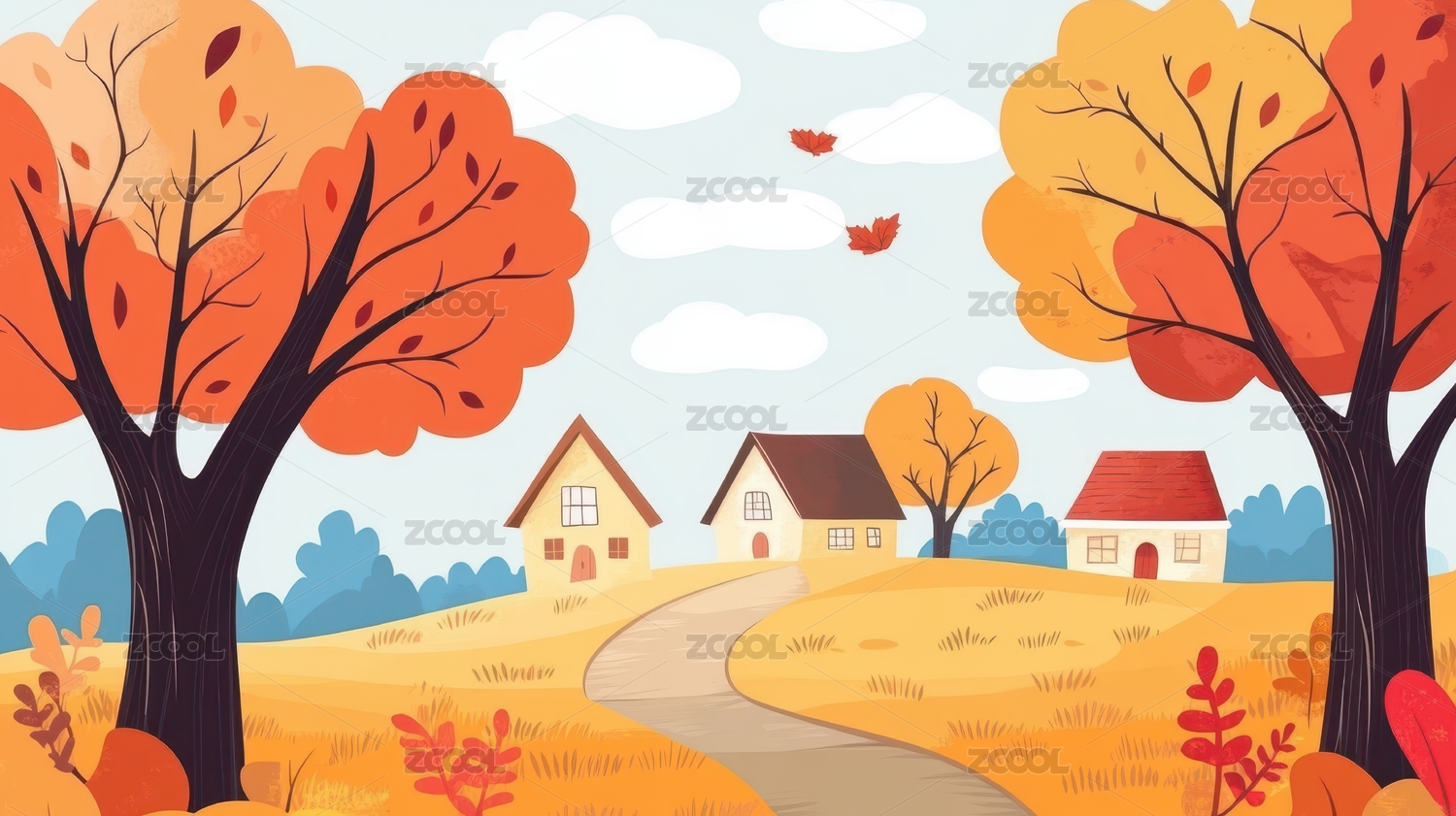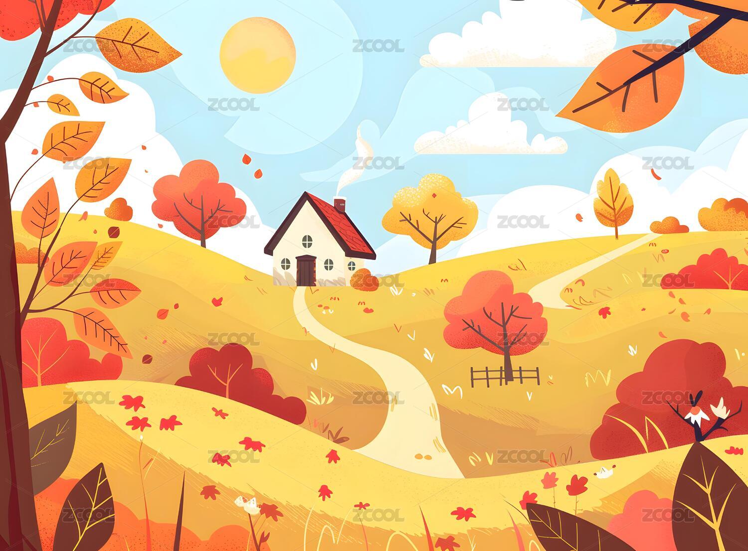 秋天风景插画 小房子