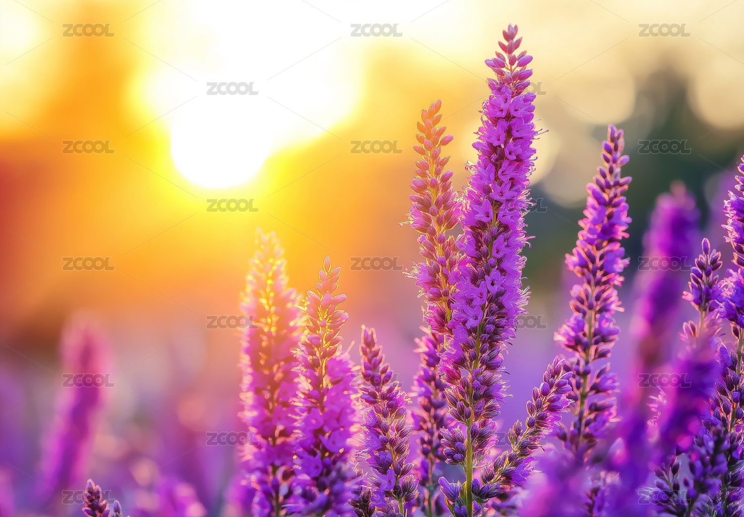 紫色薰衣草在夕阳下绽放