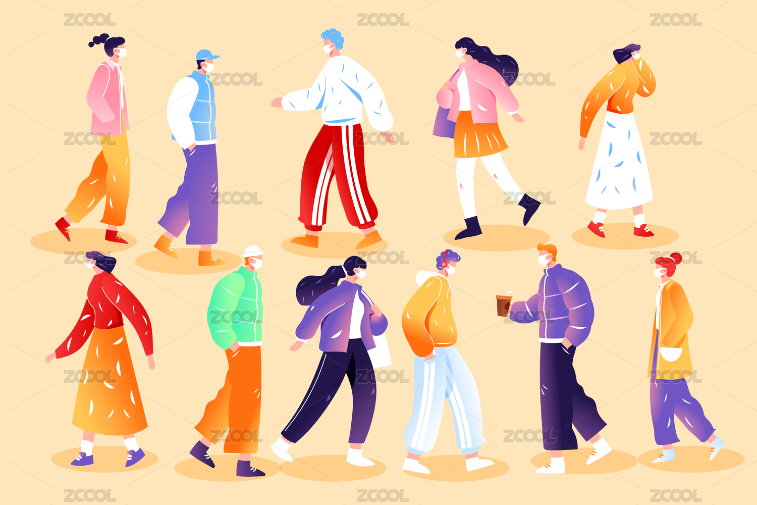 街拍人物插画