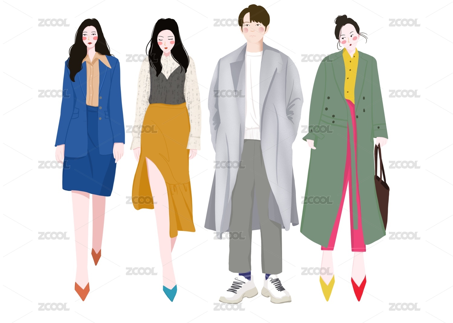 时尚人物穿搭插画