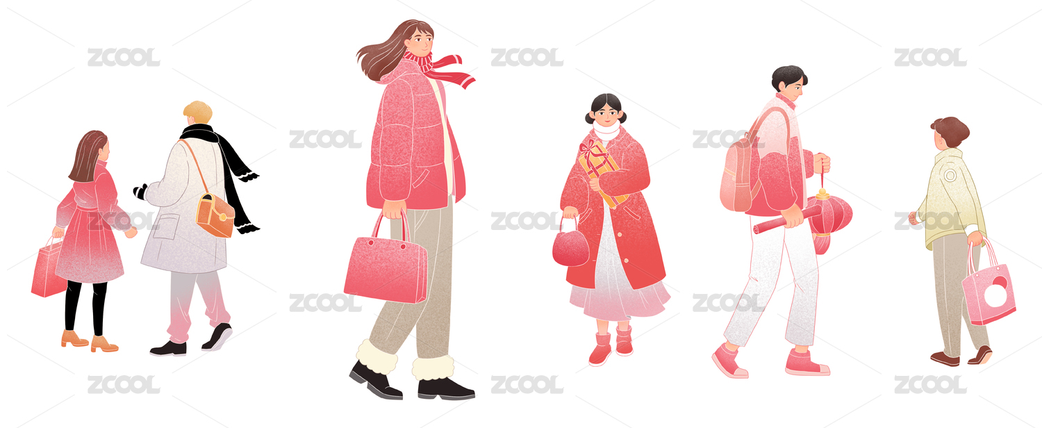 新年春节行人矢量插画