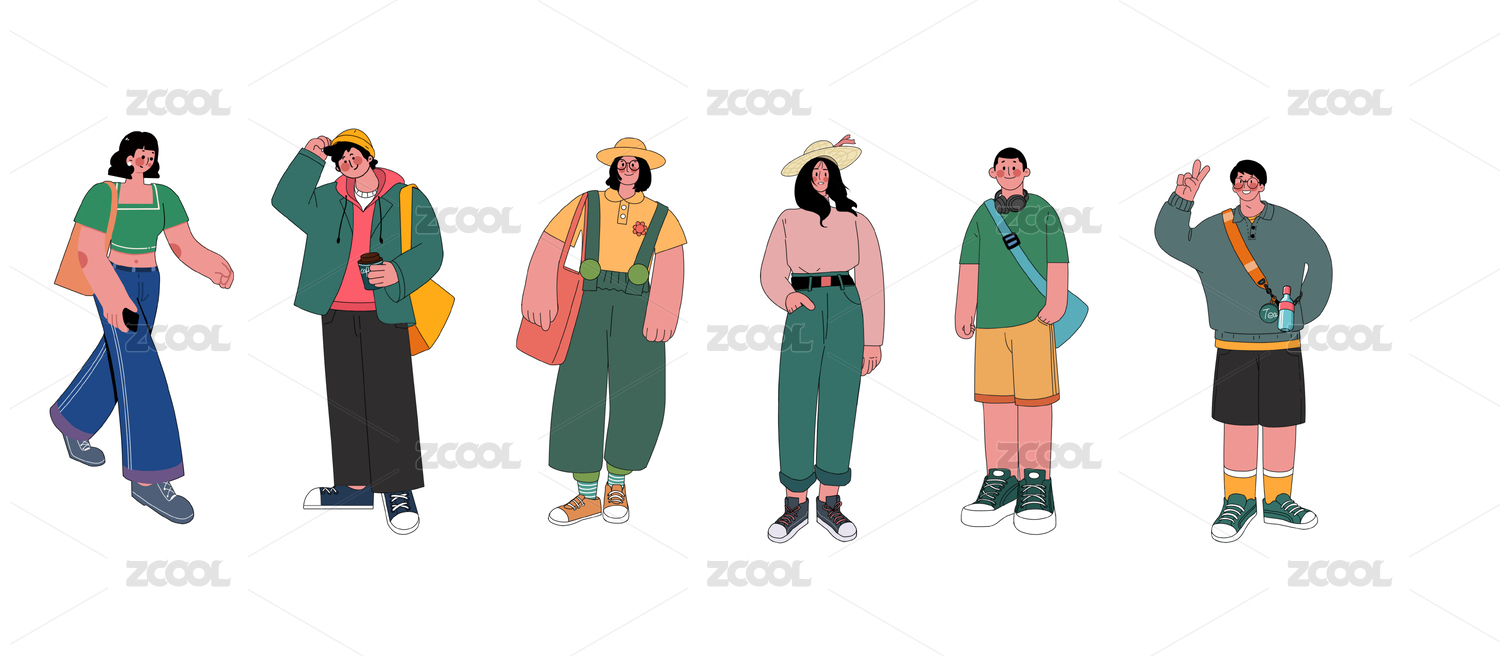 卡通时尚街拍人物