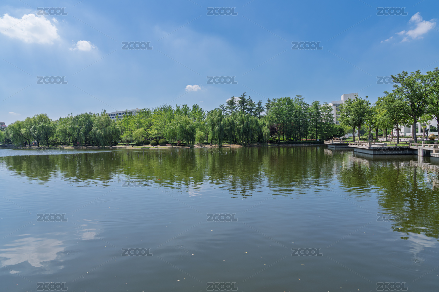 蓝天白云下江苏盐城大洋湾旅游风景区景观