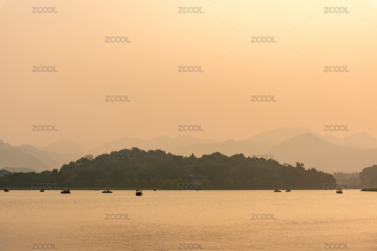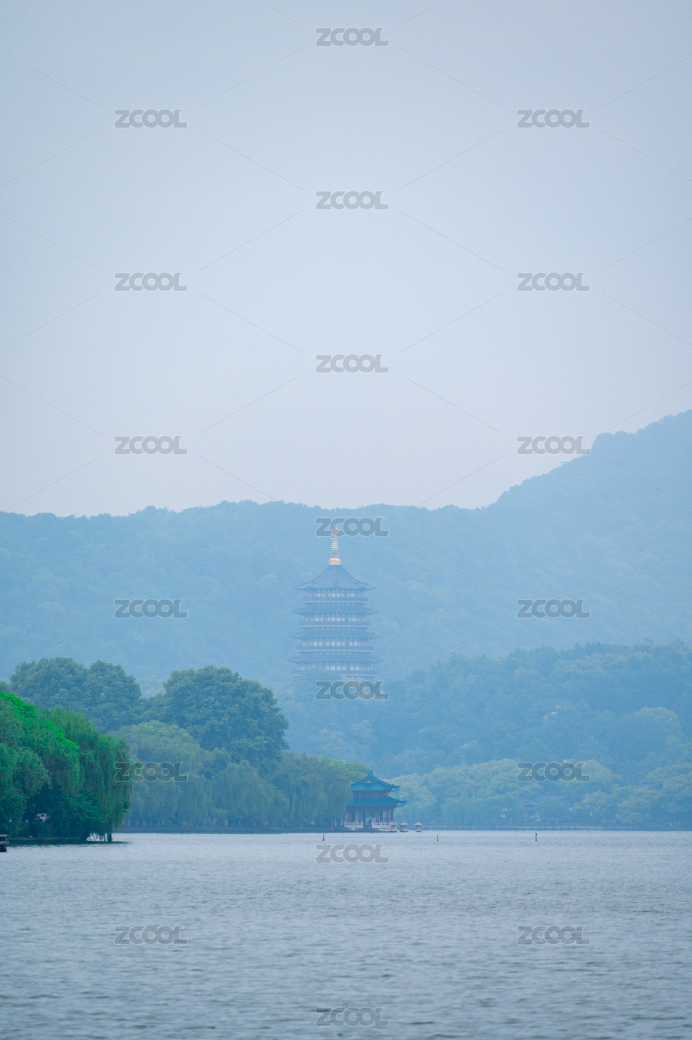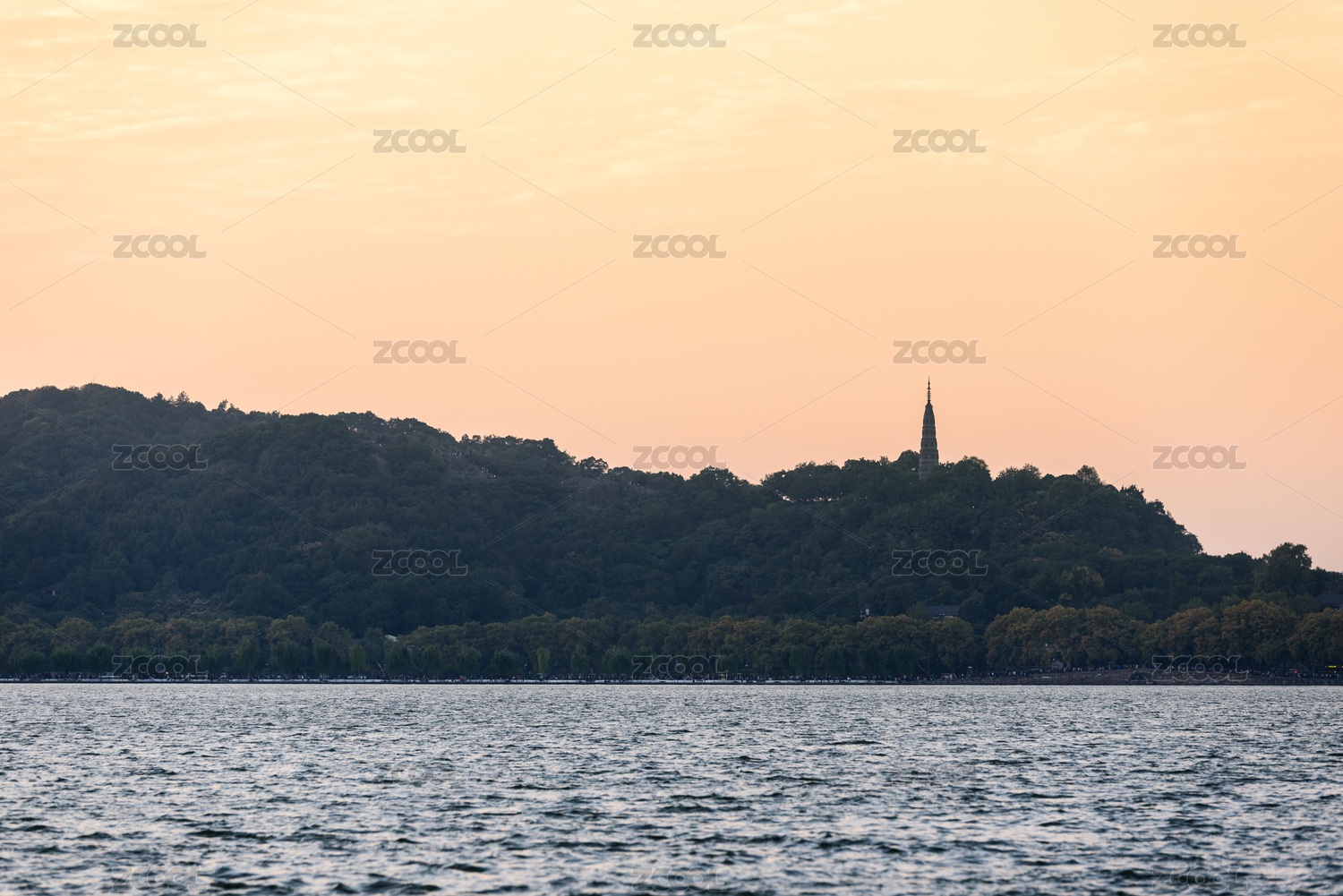 杭州宝石山,杭州西湖,三潭印月,西湖阴天,剪影,天空,自然,宁静,地形,树