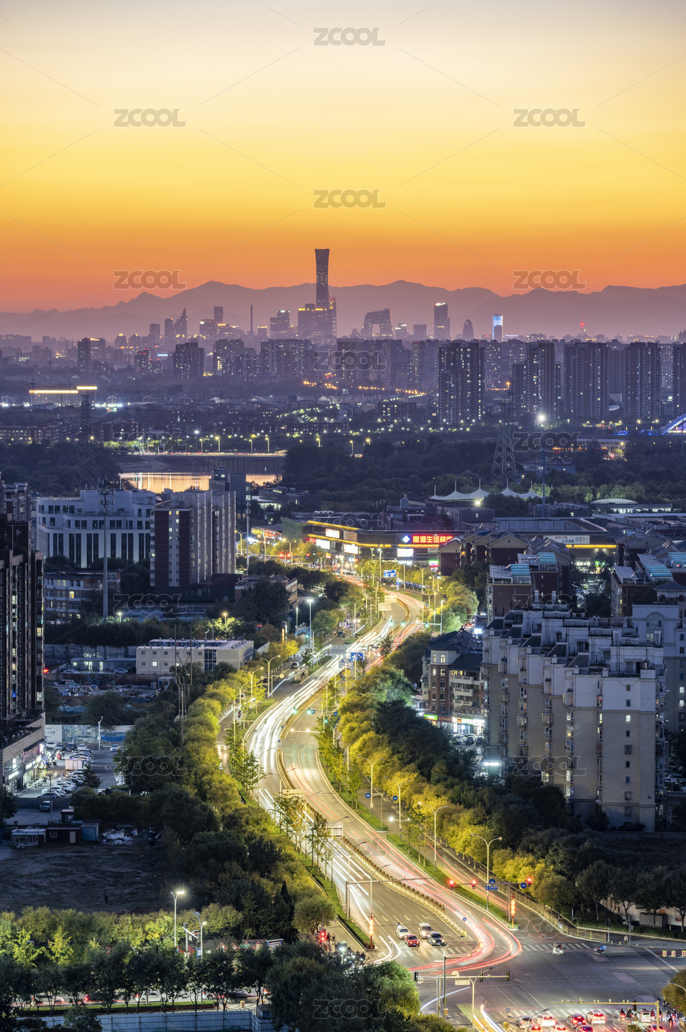 北京通州乐堤港与中国尊国贸黄昏日落