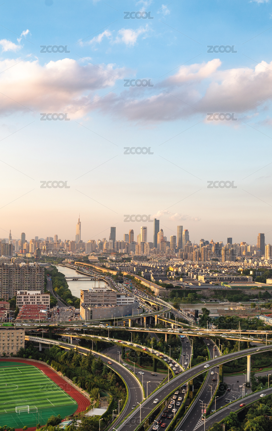 南京新街口与立交桥日落风光图