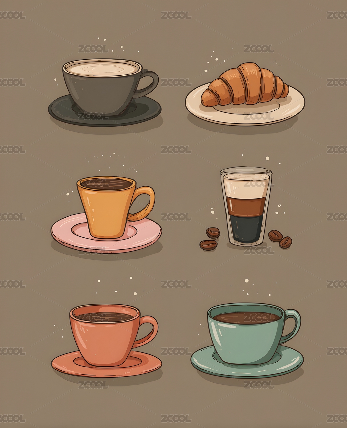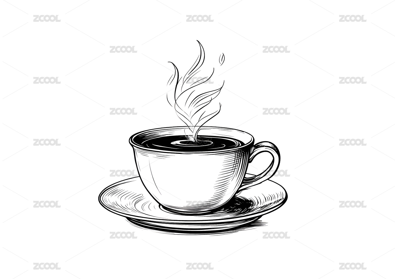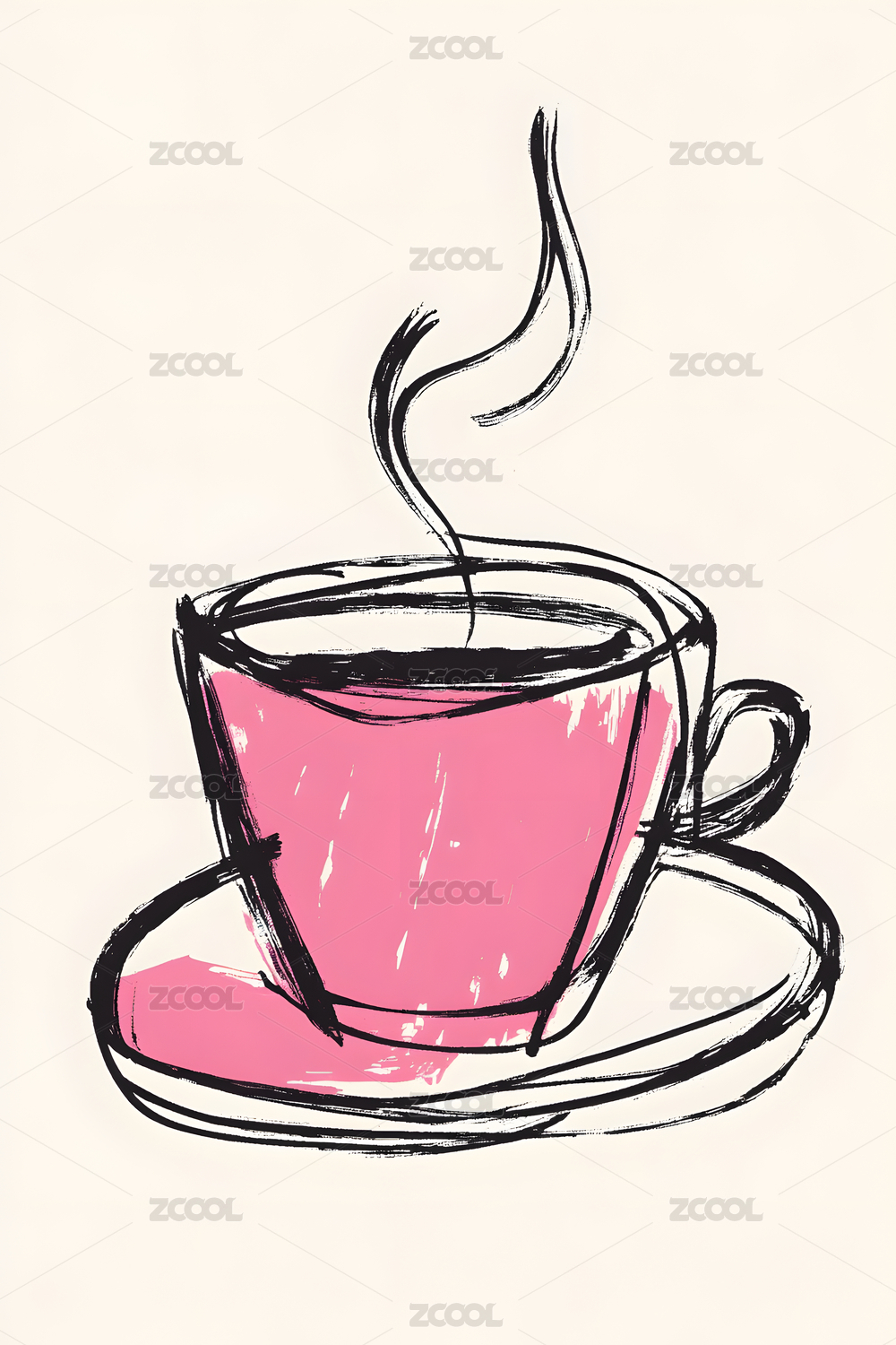 咖啡,咖啡豆,咖啡杯,线描饮品,热饮,coffee,饮品