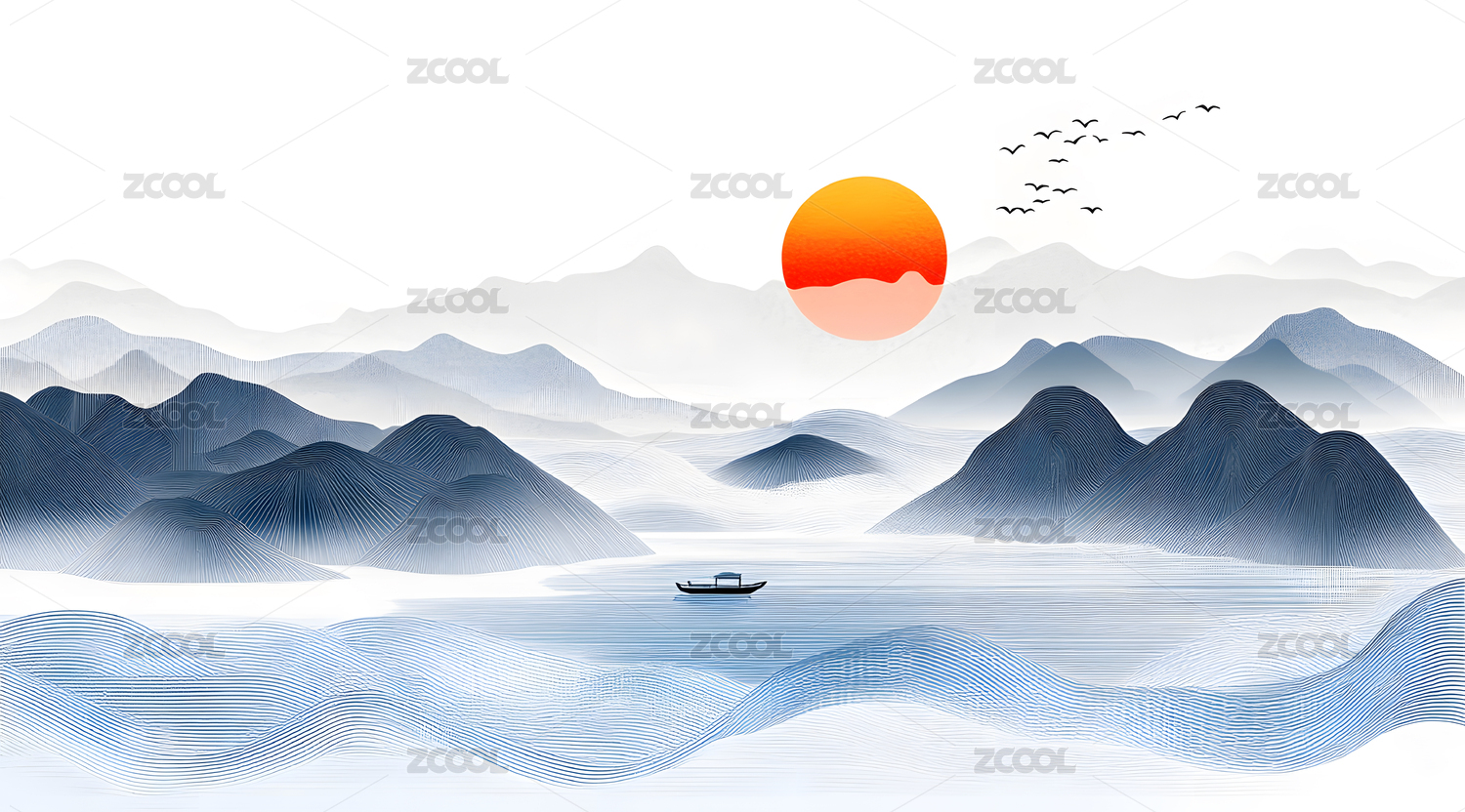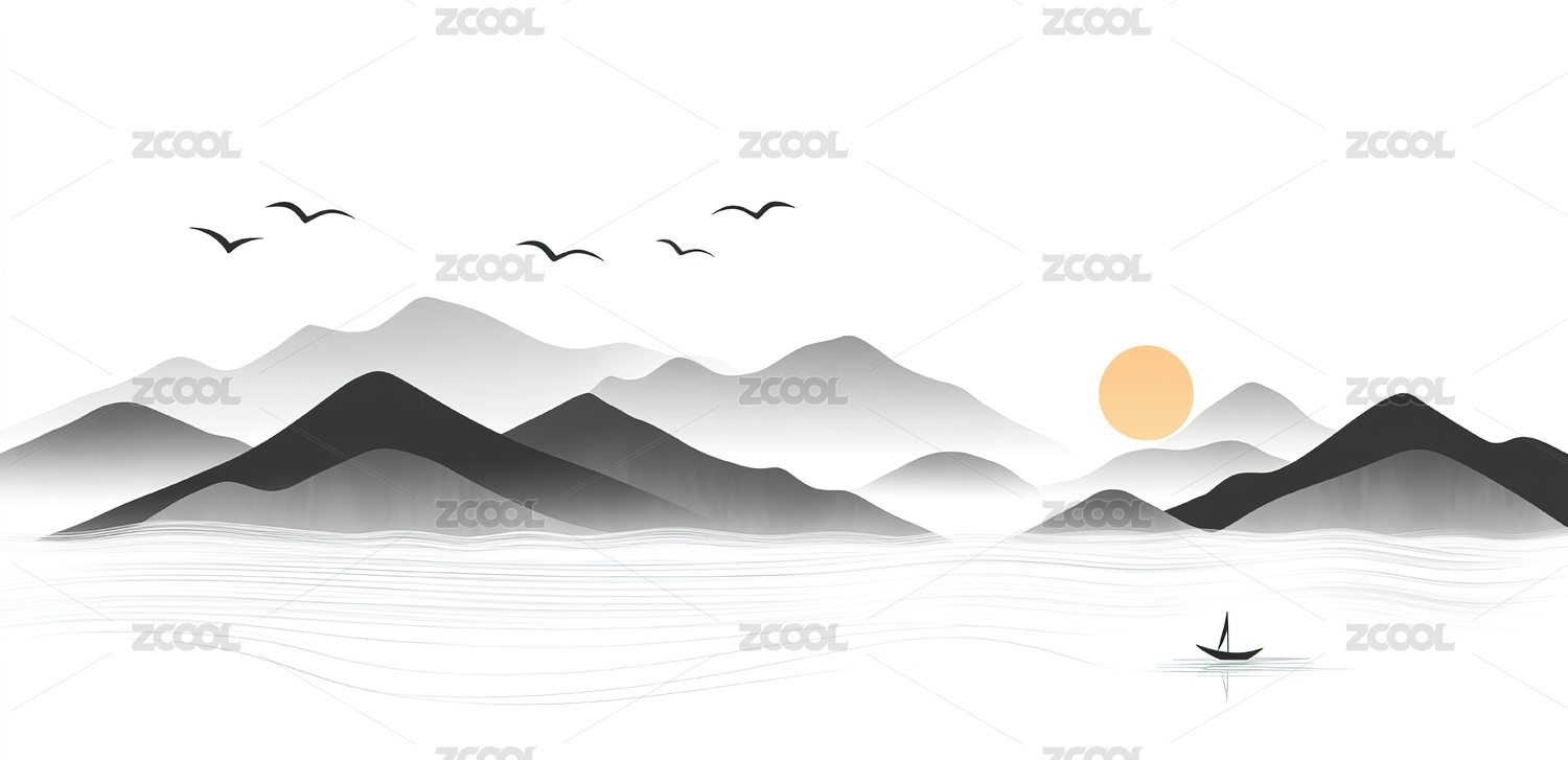 壁纸,山景,插画,中国风,屏风,扇面,矢量图,水墨画,矢量,壁画