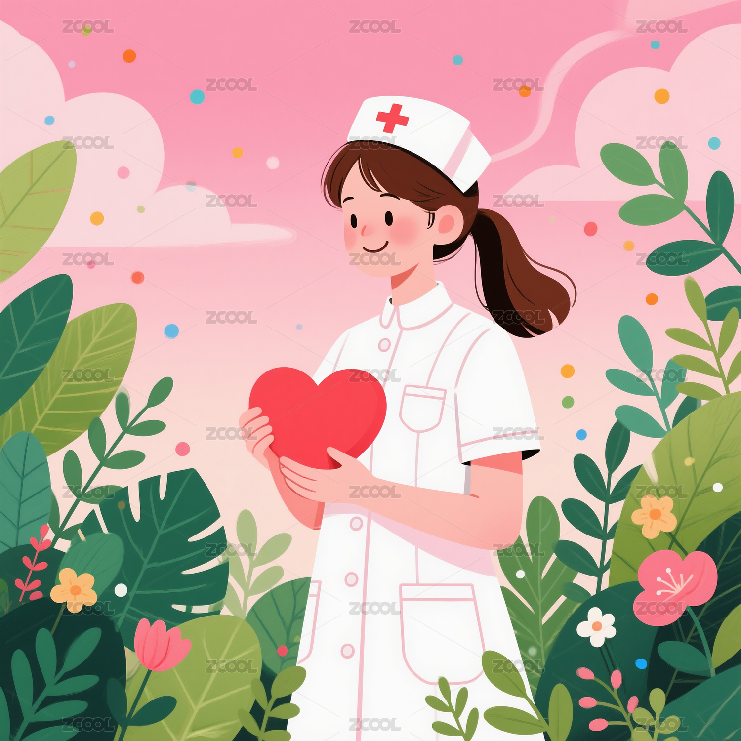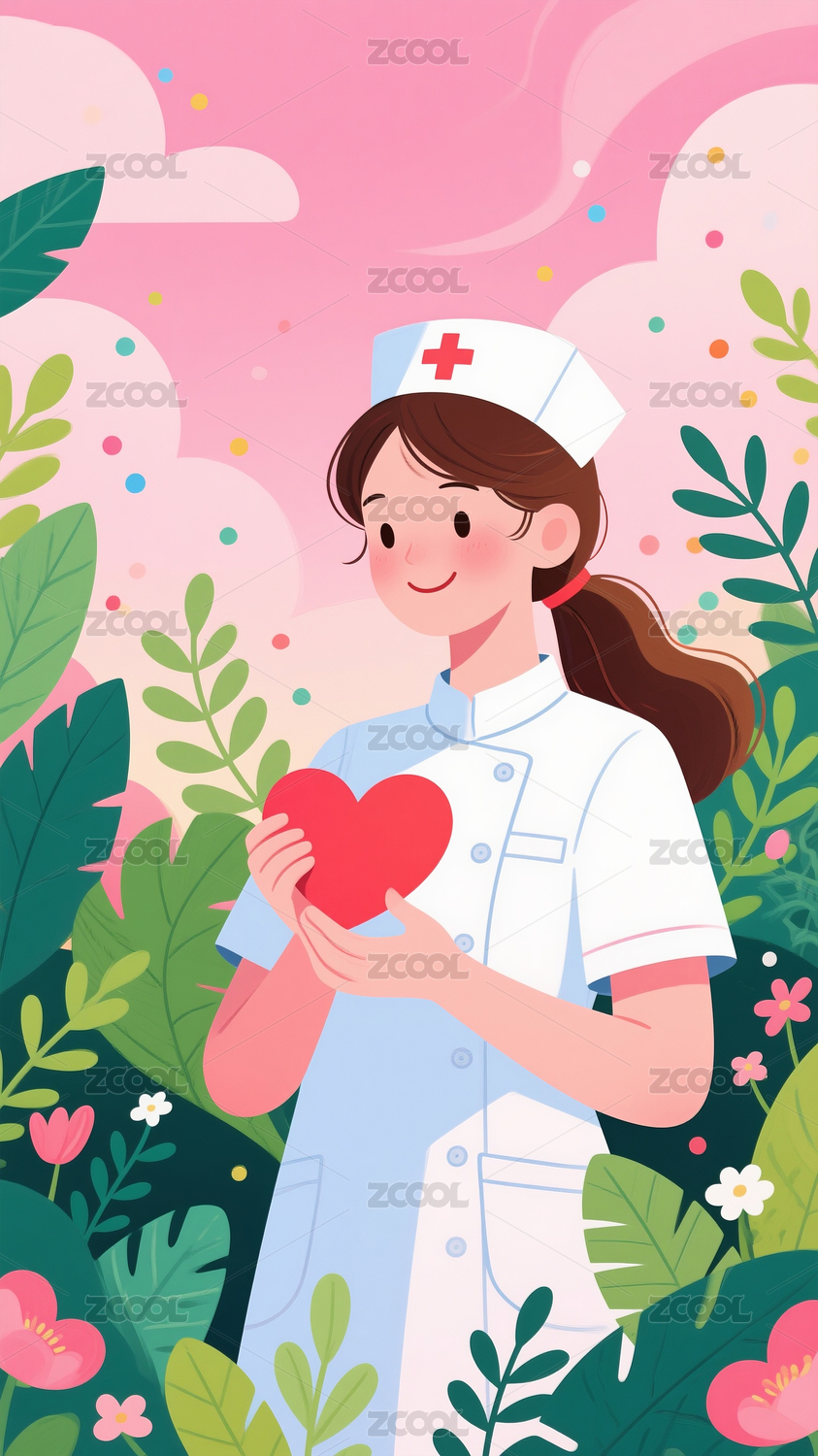 护士手捧花心形插画