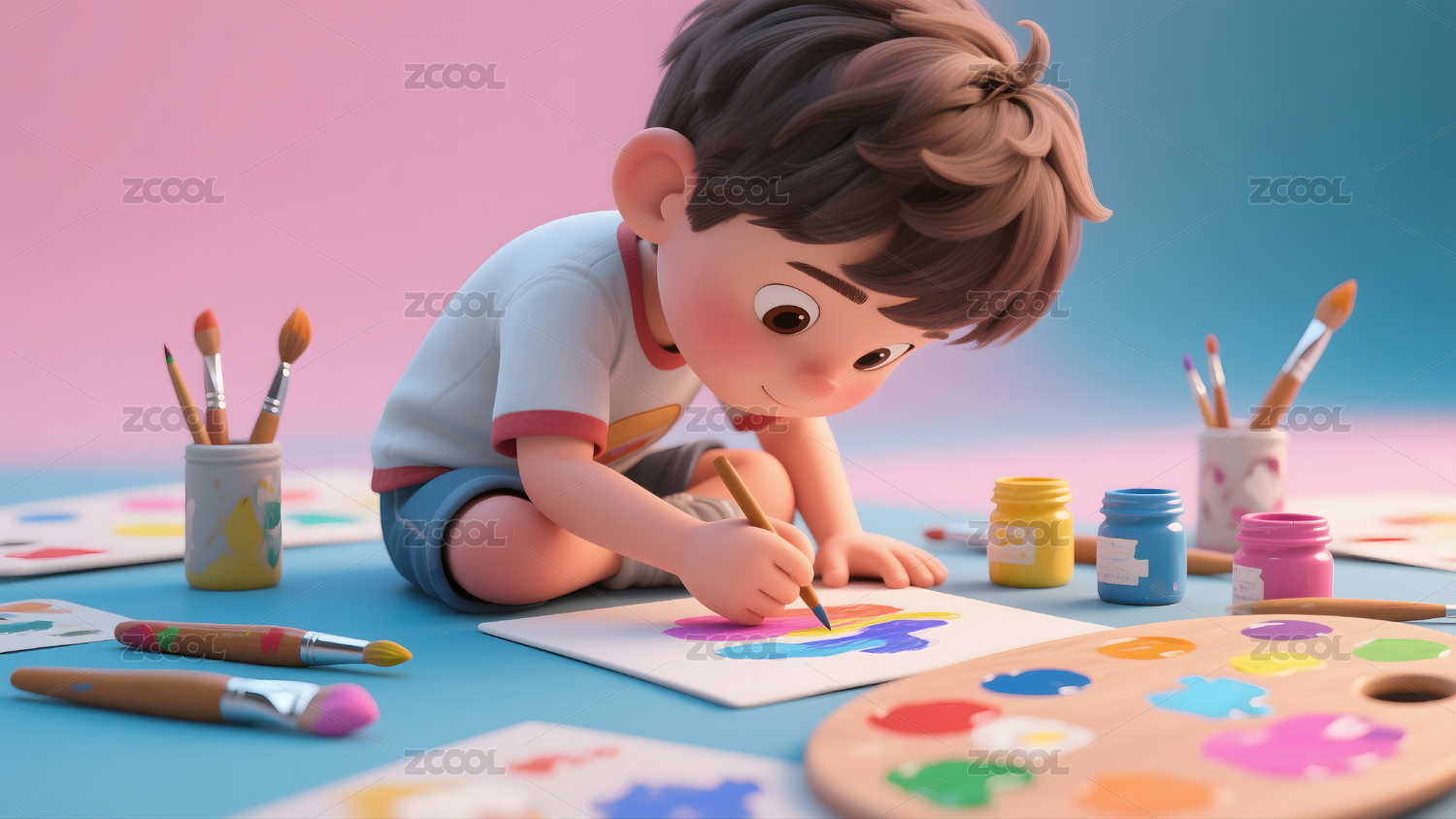 草地,儿童,男孩,人物,卡通,画画,绘画,采风,天空,彩屏
