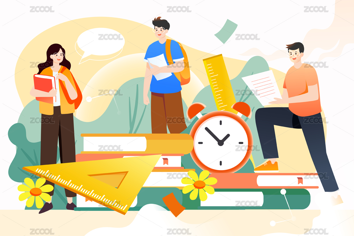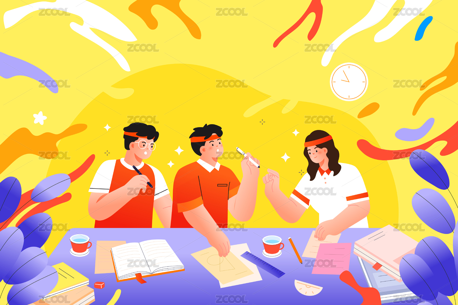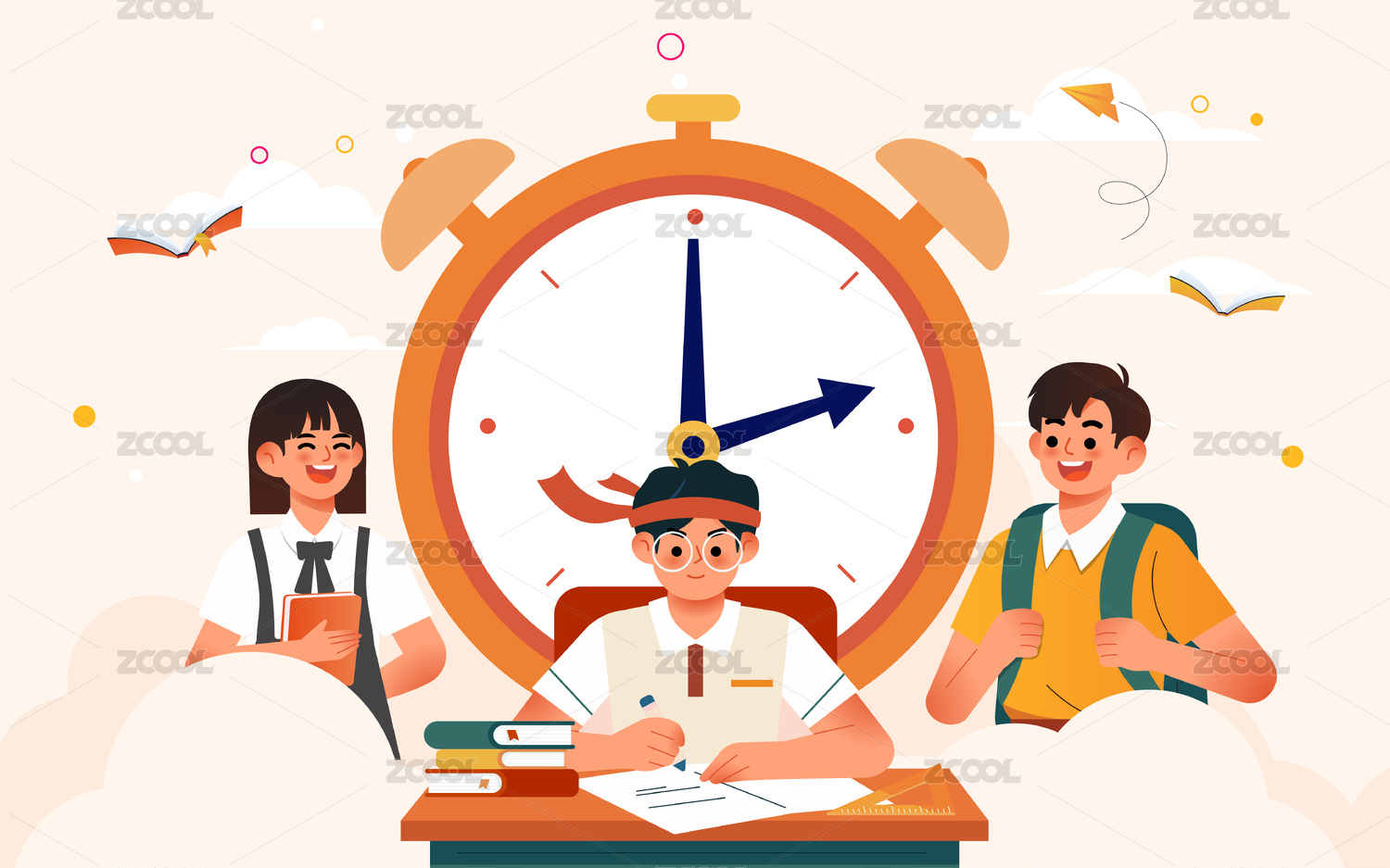 高考必胜倒计时中学生考试冲刺加油学习插画