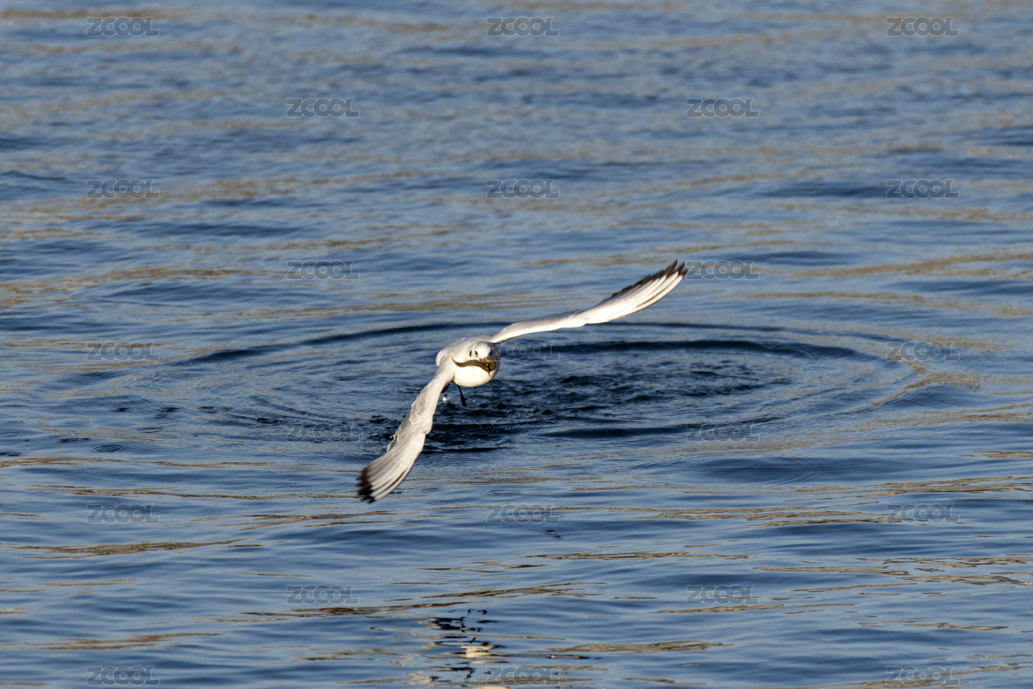 红嘴海鸥在水面上自由飞翔追逐觅食嬉戏