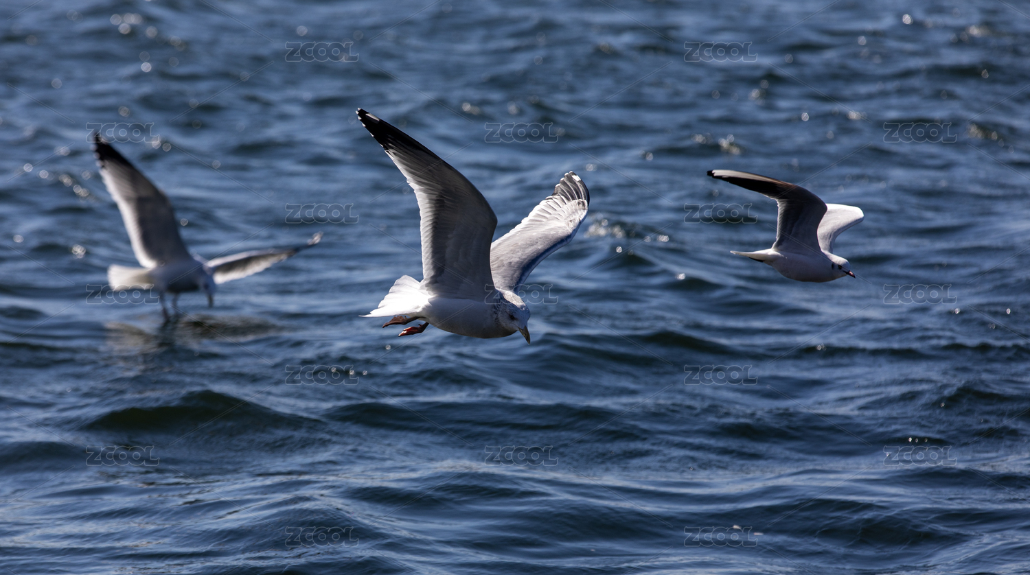 海鸥在海面上自由飞翔追逐觅食嬉戏特写