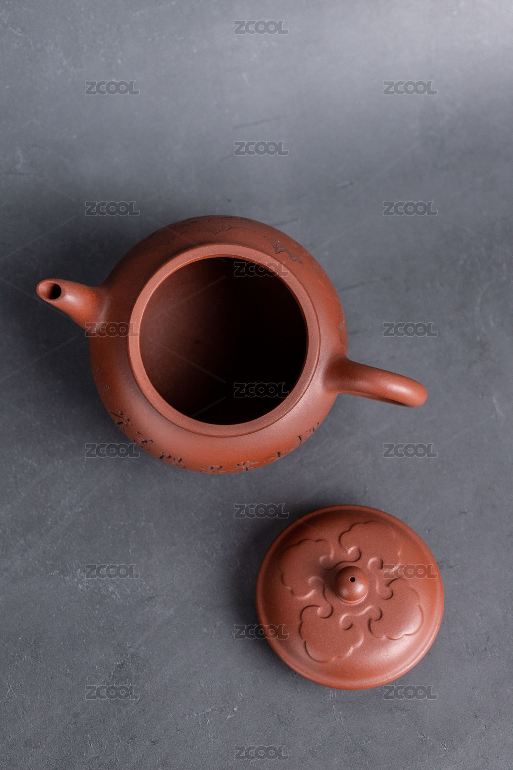 紫砂壶底部特写,在黑色底