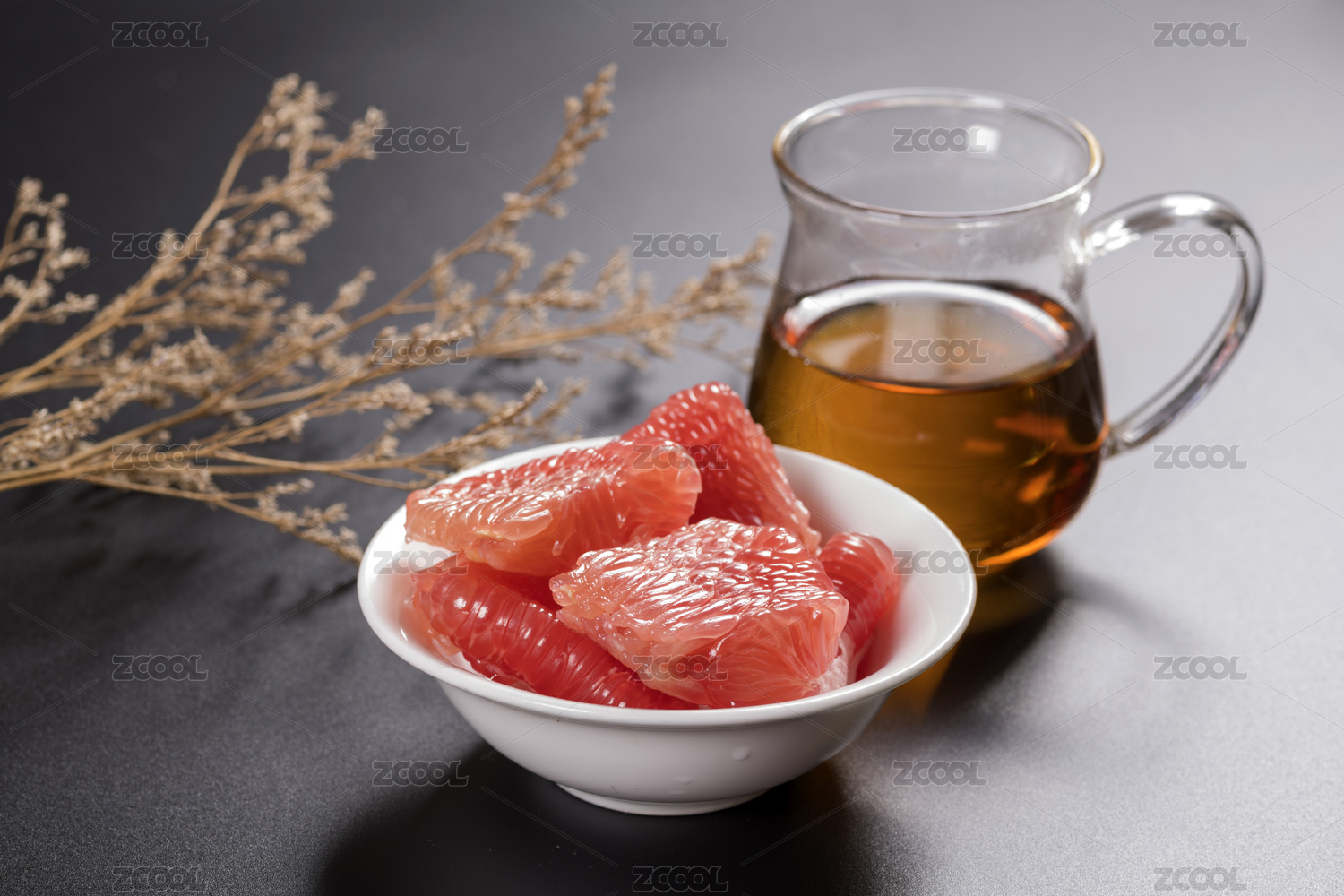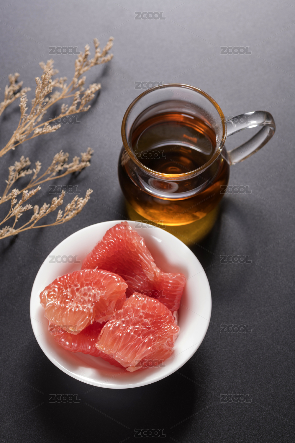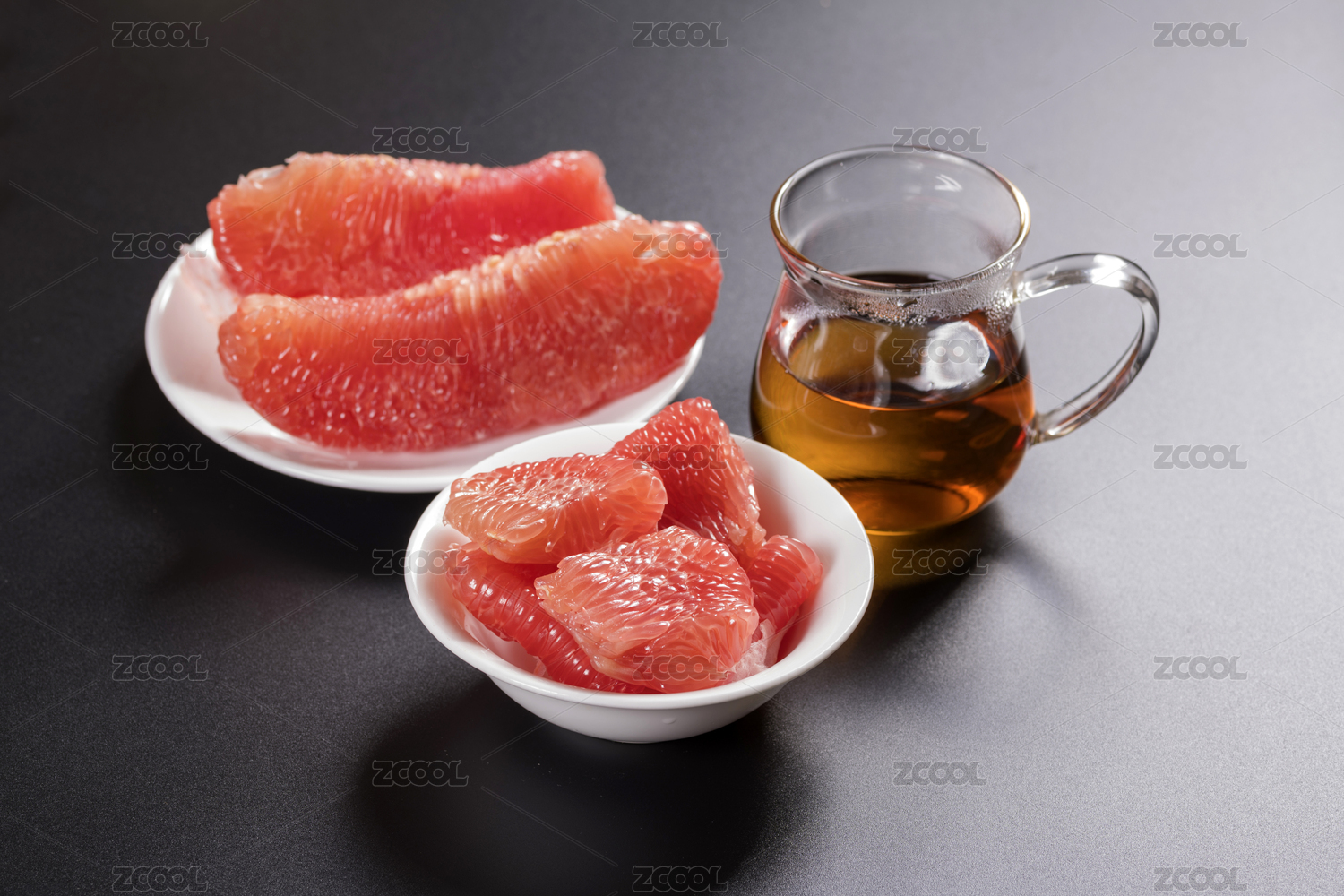 具有保健功能的红心蜜柚摆放在白色盘子中