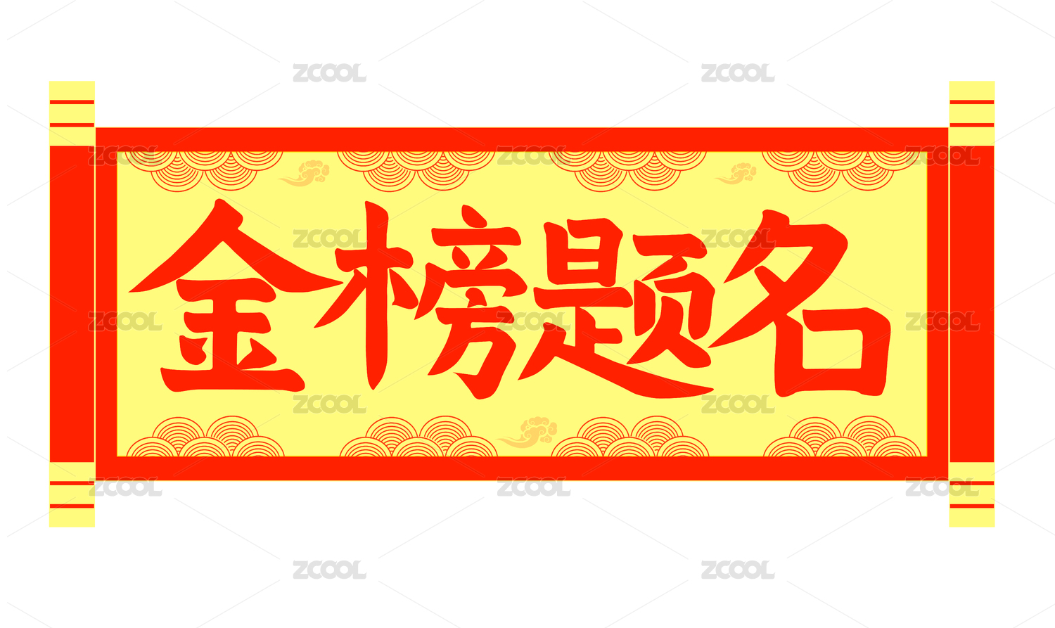 国潮喜庆卷轴灯笼祝学子金榜题名矢量素材